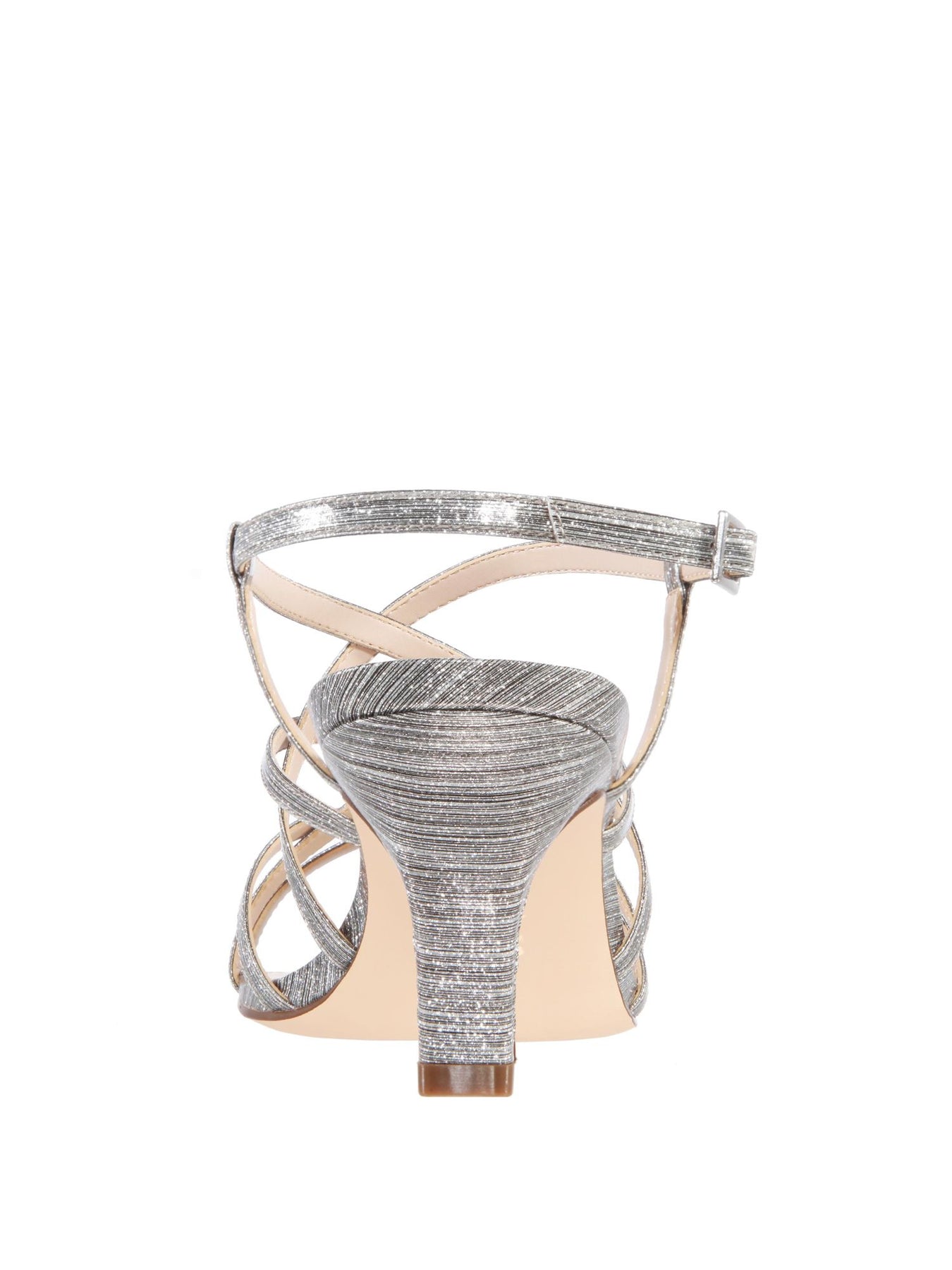 NINA NEW YORK Womens Silver Padded Metallic Strappy Neptune Almond Toe Kitten Heel Buckle Dress Slingback Sandal 5 W