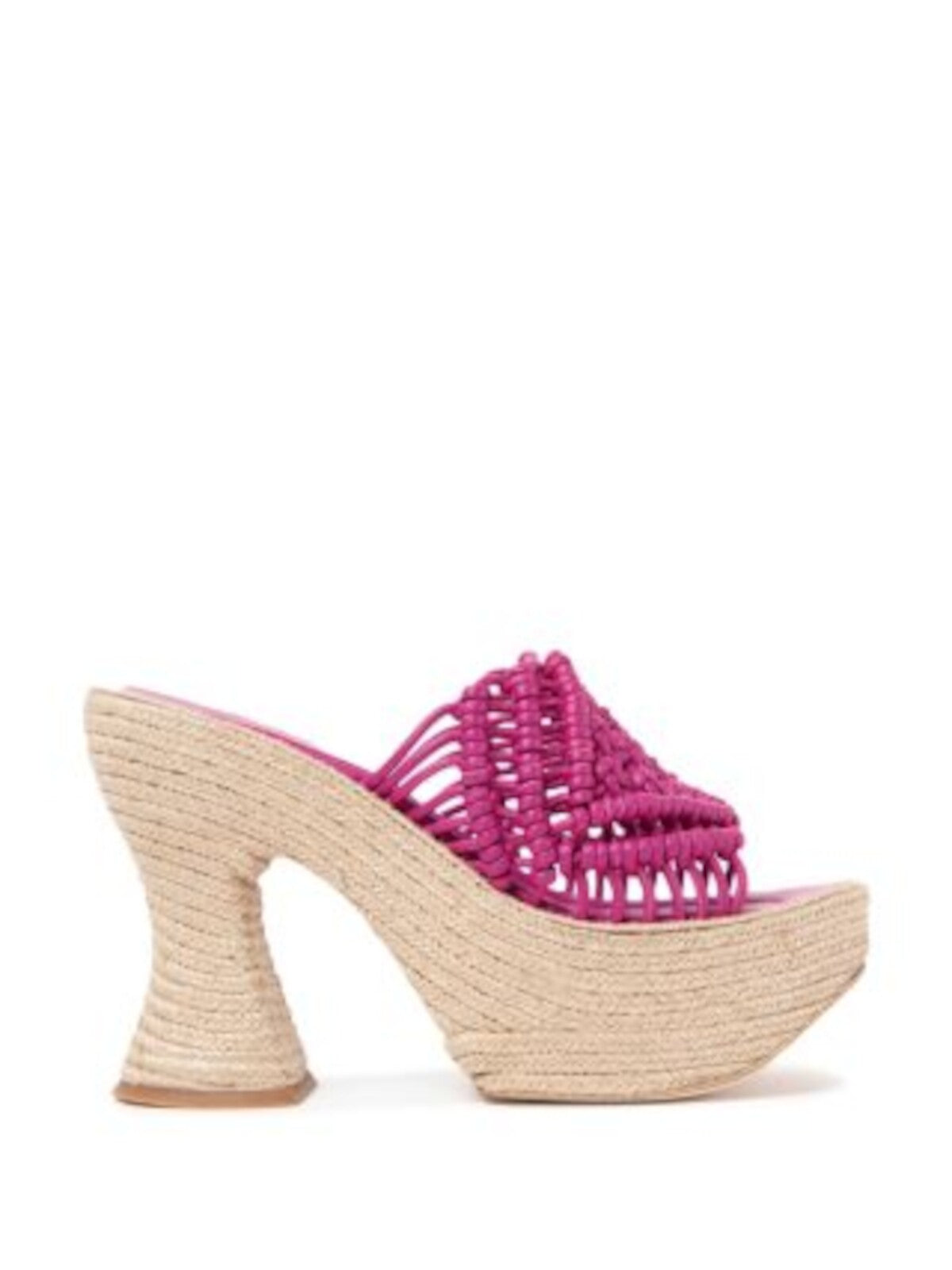 PALOMA BARCELO Womens Pink Lug Sole 2-1/2" Platform Woven Padded Salma Almond Toe Flare Slip On Leather Espadrille Shoes 37