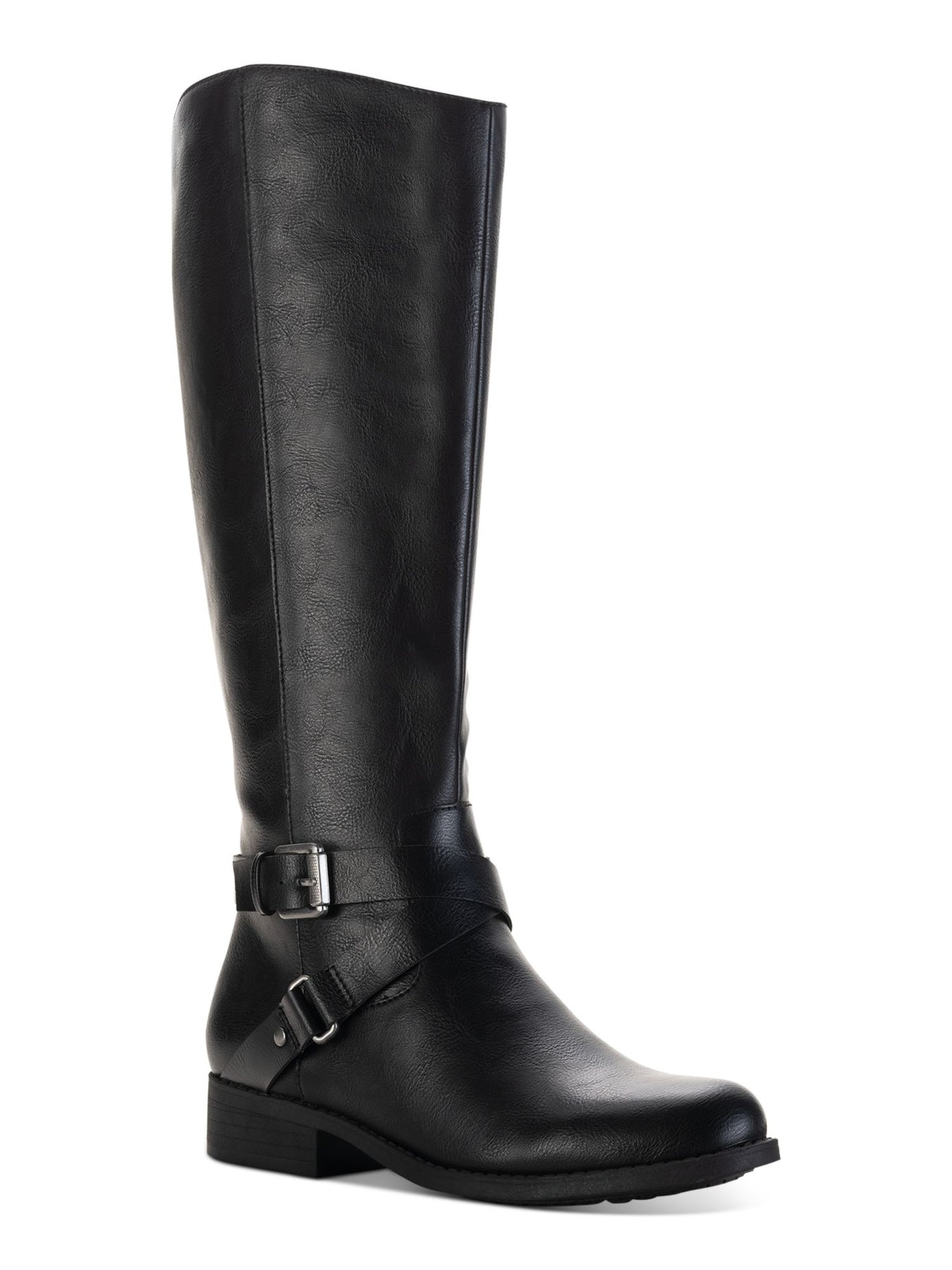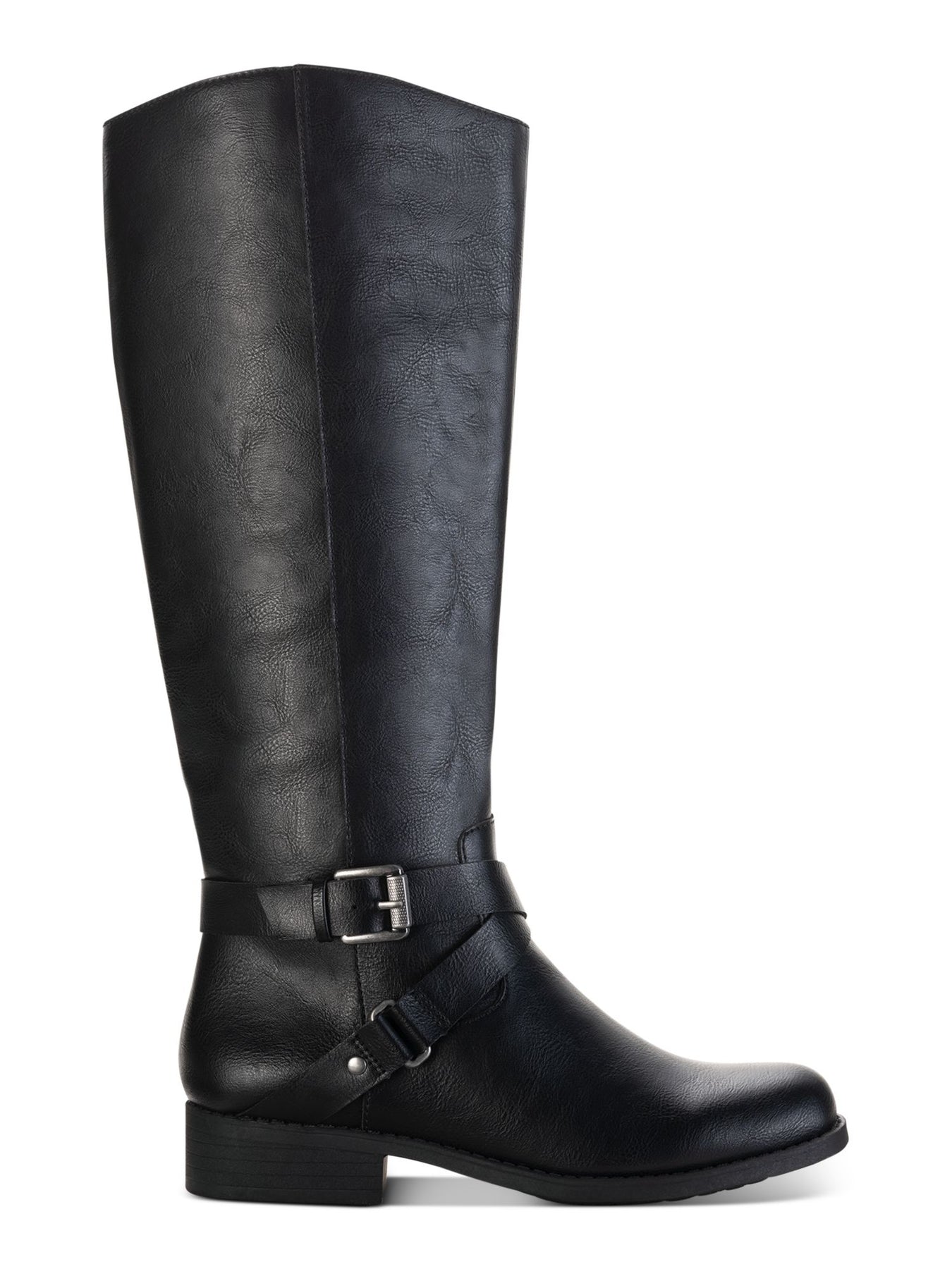 STYLE & COMPANY Womens Black Wide Calf Buckle Accent Marlee Round Toe Block Heel Zip-Up Riding Boot M