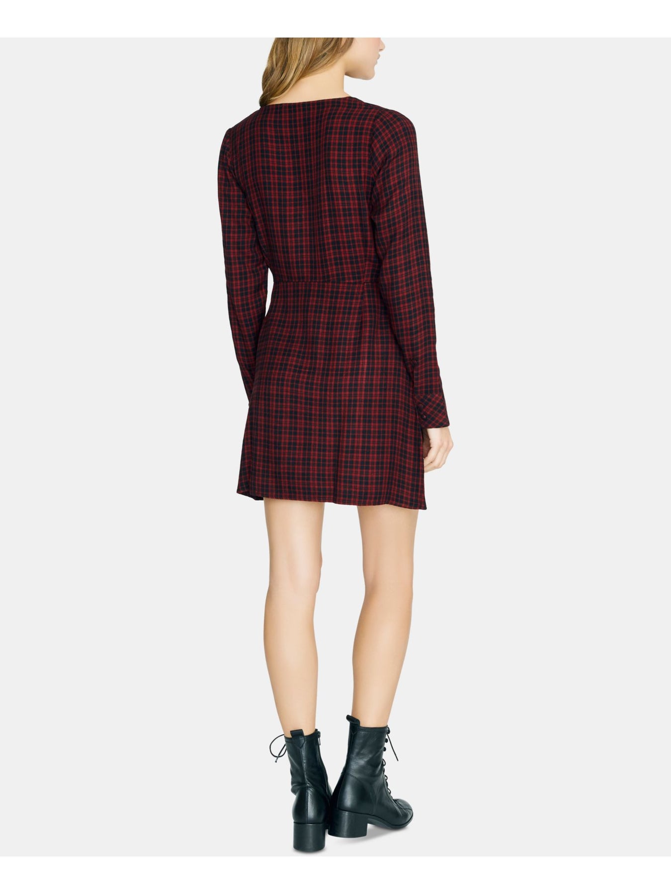 Womens Belted Plaid Long Sleeve V Neck Mini Wrap Dress
