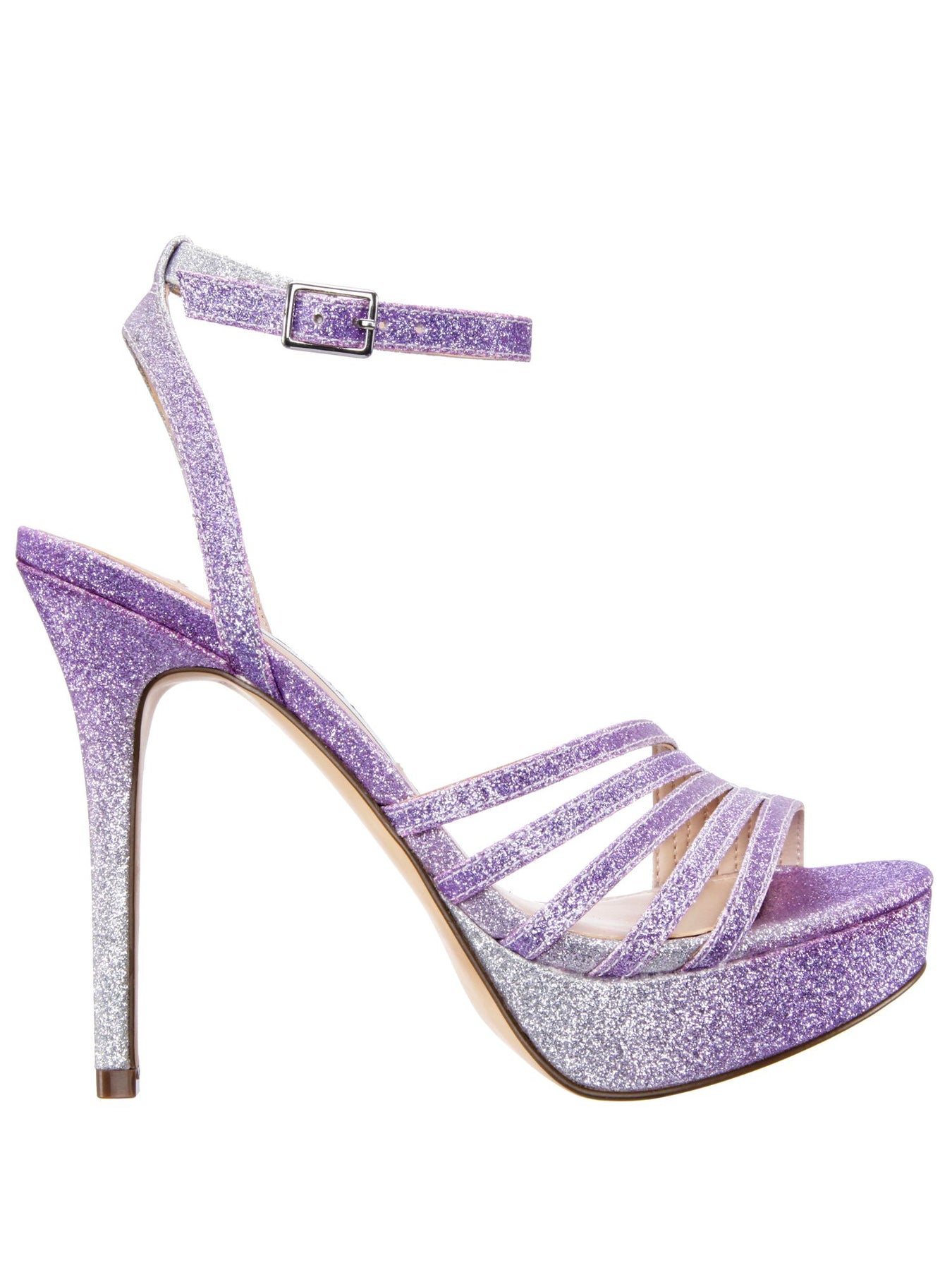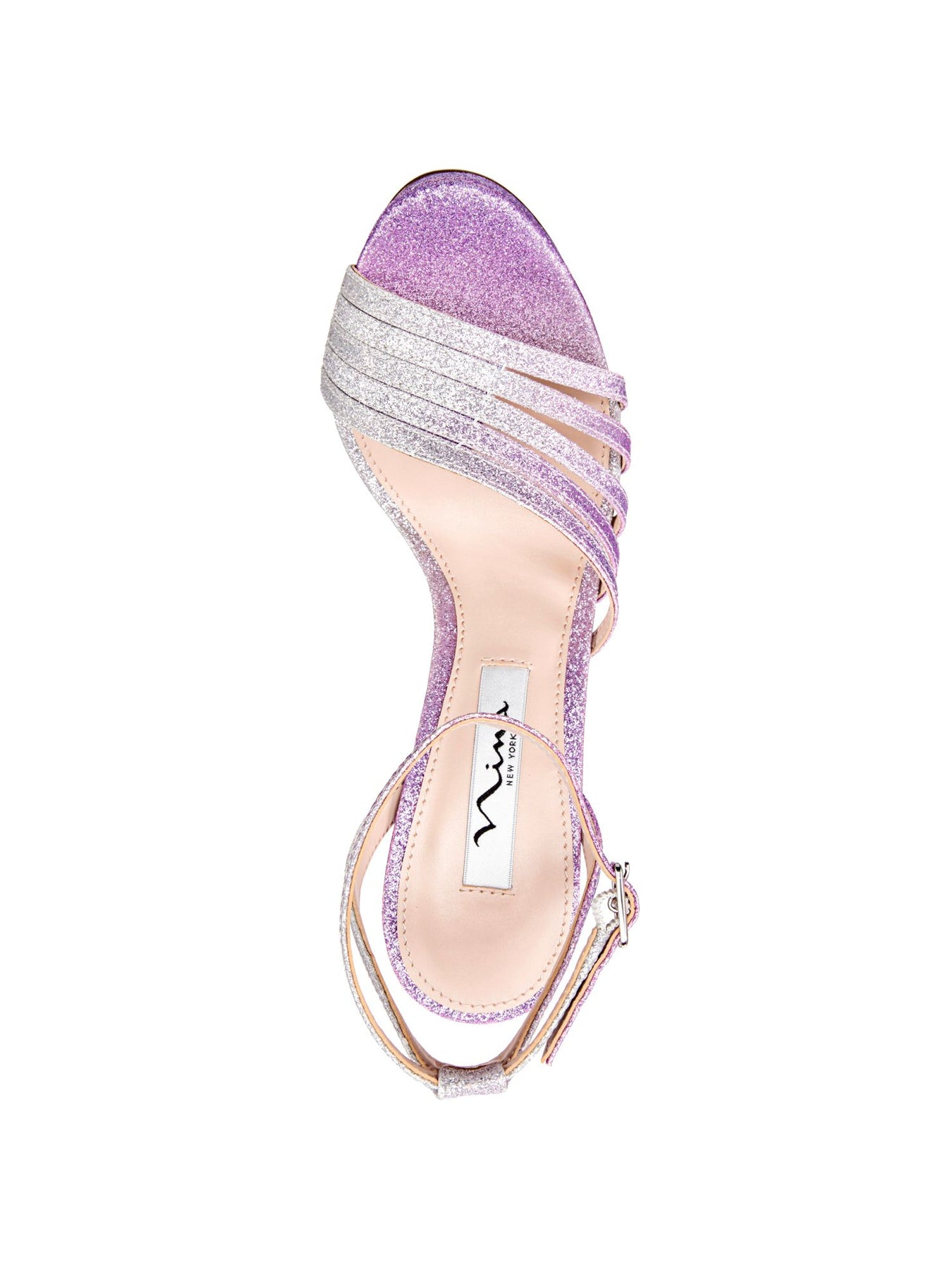 NINA Womens Silver 1" Platform Strappy Glitter Adjustable Strap Padded Starla Round Toe Stiletto Buckle Dress Sandals 8.5 M