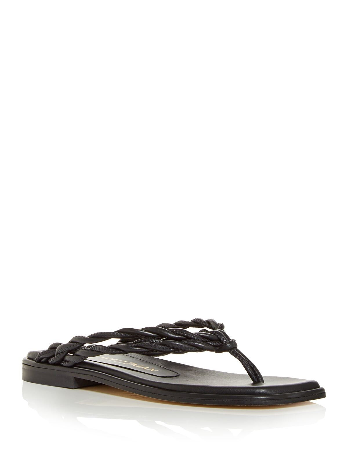 Womens Black Padded Braided Calypso Square Toe Block Heel Slip On Leather Thong Sandals Shoes B