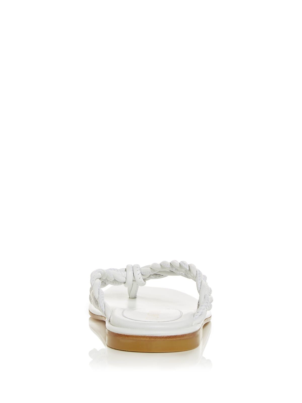 Womens White Padded Braided Calypso Square Toe Block Heel Slip On Leather Thong Sandals Shoes B