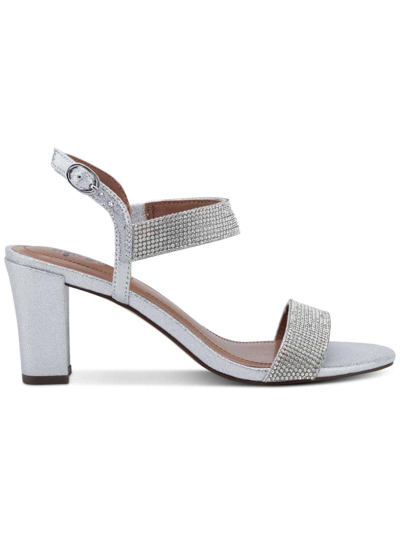 Womens Silver Mixed Media Padded Goring Bonitaa Round Toe Cone Heel Buckle Dress Slingback Sandal M