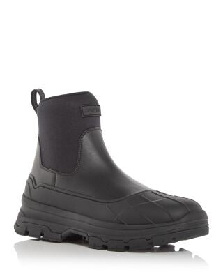 Mens Black Mixed Media 1" Platform Back Pull-Tab Water Resistant Cushioned Explorer City Round Toe Wedge Boots Shoes