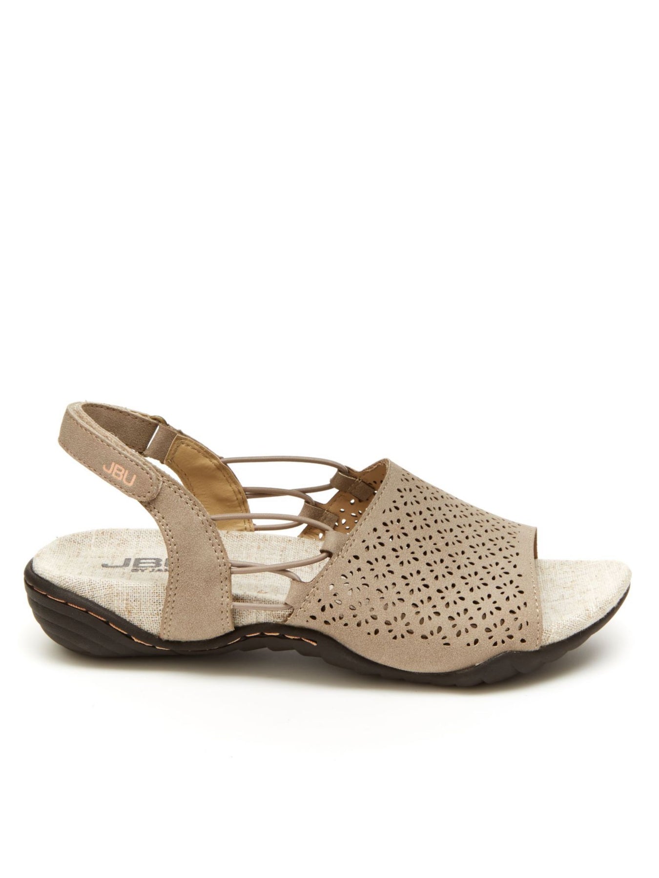 Womens Gray Perforated All Terra Traction Adjustable Strap Cushioned Pixie Vegan Round Toe Sandals Shoes M