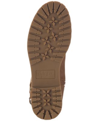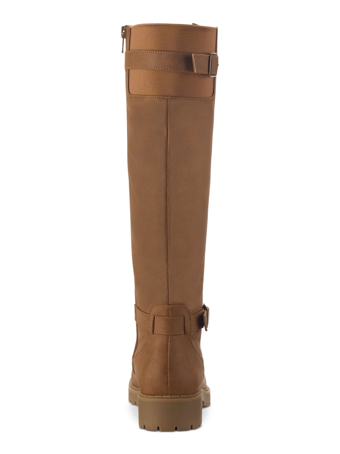 Womens Brown Cushioned Lug Sole Buckle Accent Goring Elenorr Round Toe Block Heel Zip-Up Riding Boot M