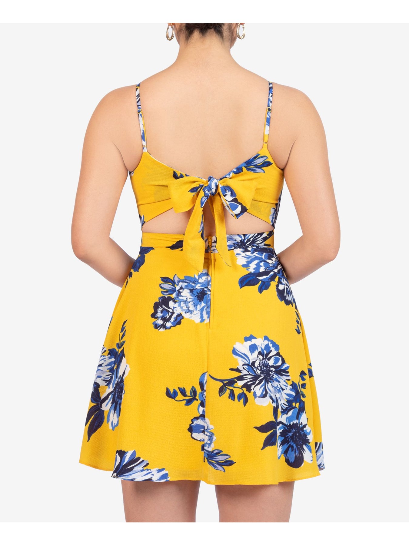 B DARLIN Womens Yellow Zippered Tie-back Floral Spaghetti Strap Square Neck Mini Fit + Flare Dress 5\6