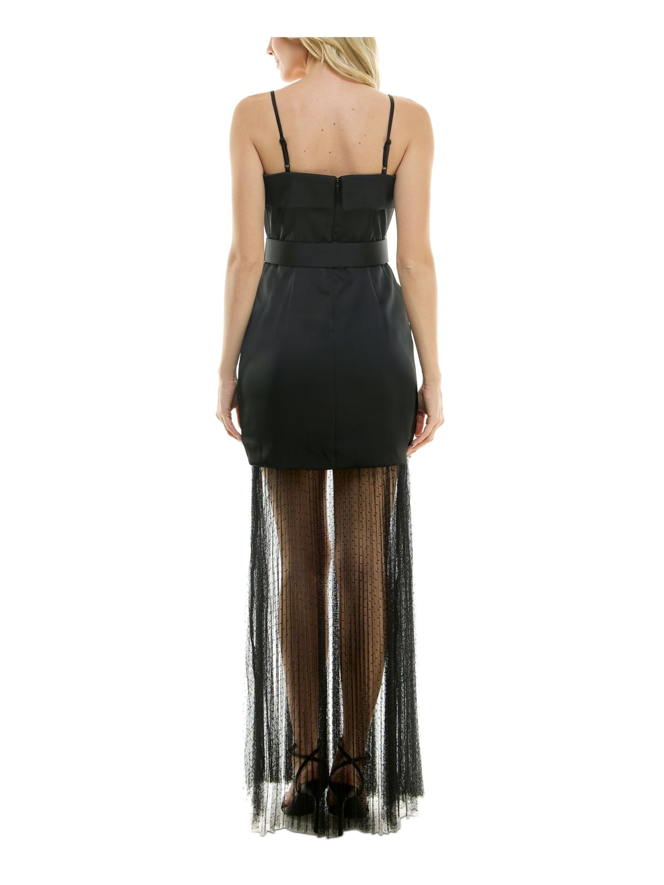 TAYLOR Womens Black Zippered Adjustable Lace Bubble Hem Fold Over Belted Spaghetti Strap Square Neck Maxi Evening Sheath Dress 4