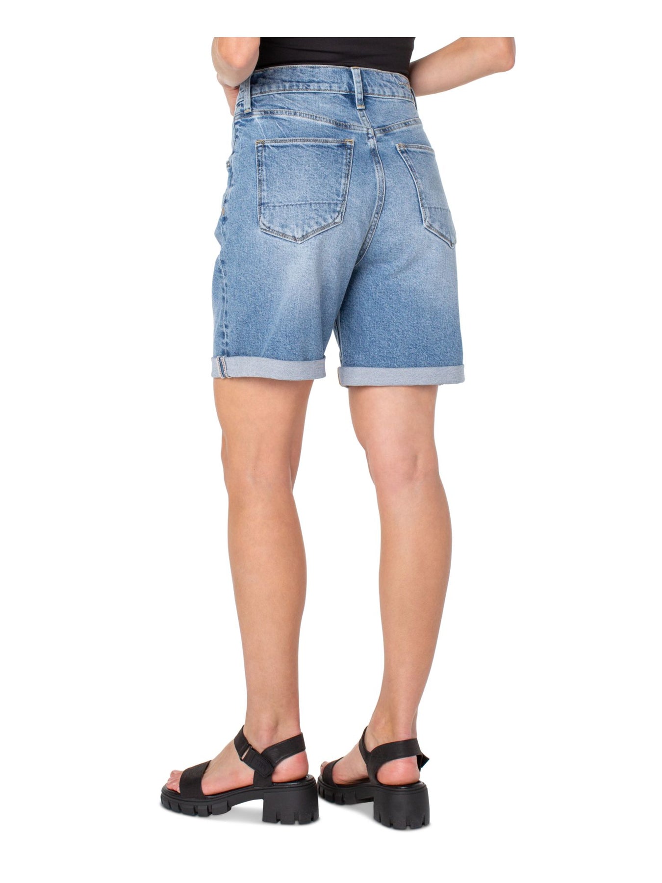 EARNEST SEWN NEW YORK Womens High Waist Shorts Blue Denim Pocketed Pleated Solid Rolled Cuffs Button Fly Juniors 25