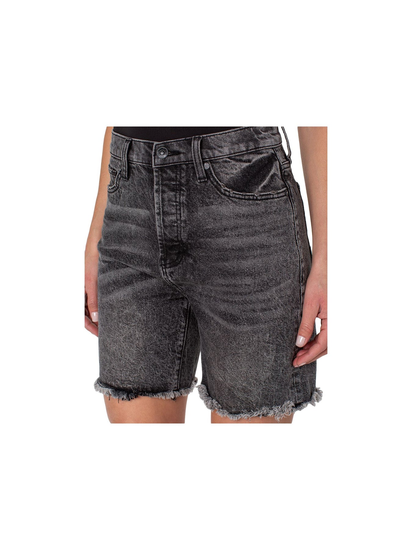 Womens Gray Denim Frayed Pocketed Button Fly High Waist Shorts