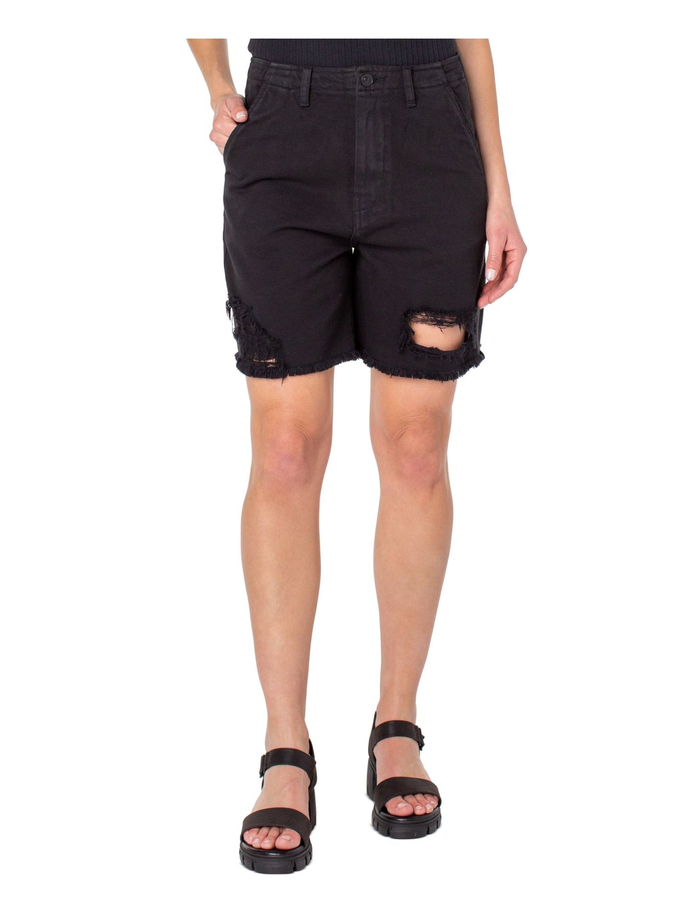 EARNEST SEWN NEW YORK Womens High Waist Shorts Black Denim Zippered Pocketed Solid Frayed Hems Juniors 29