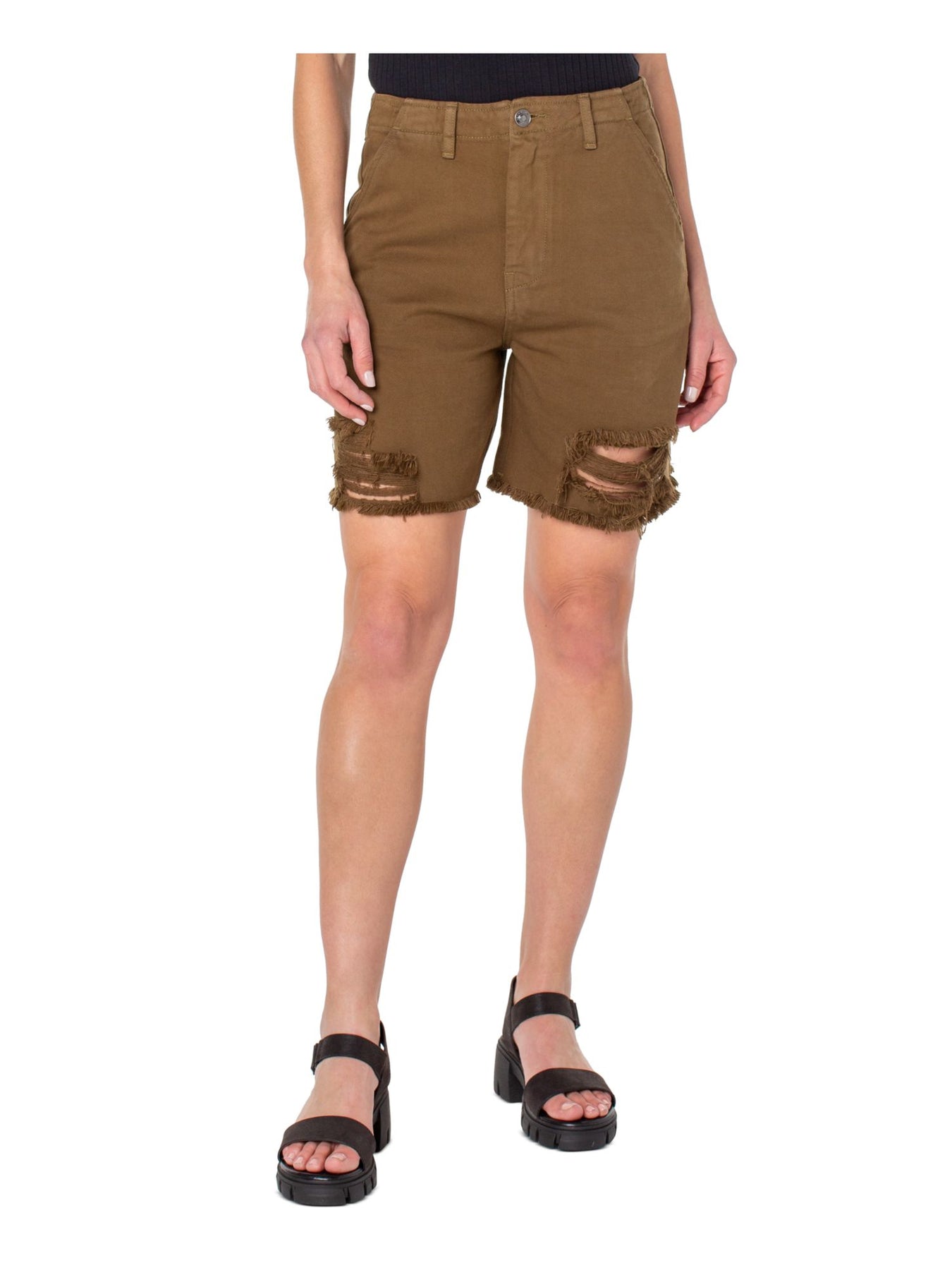 Womens Denim Zippered Frayed Hems Button Closure High Waist Shorts