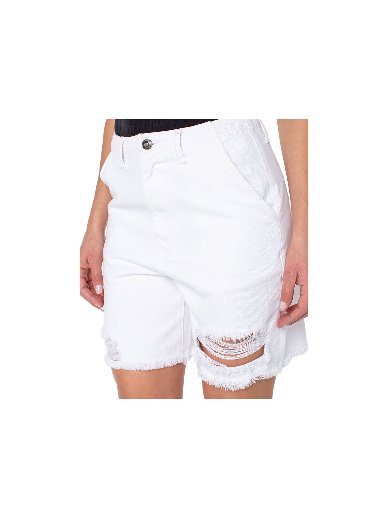 EARNEST SEWN NEW YORK Womens High Waist Shorts White Denim Zippered Pocketed Frayed Hems Juniors 29