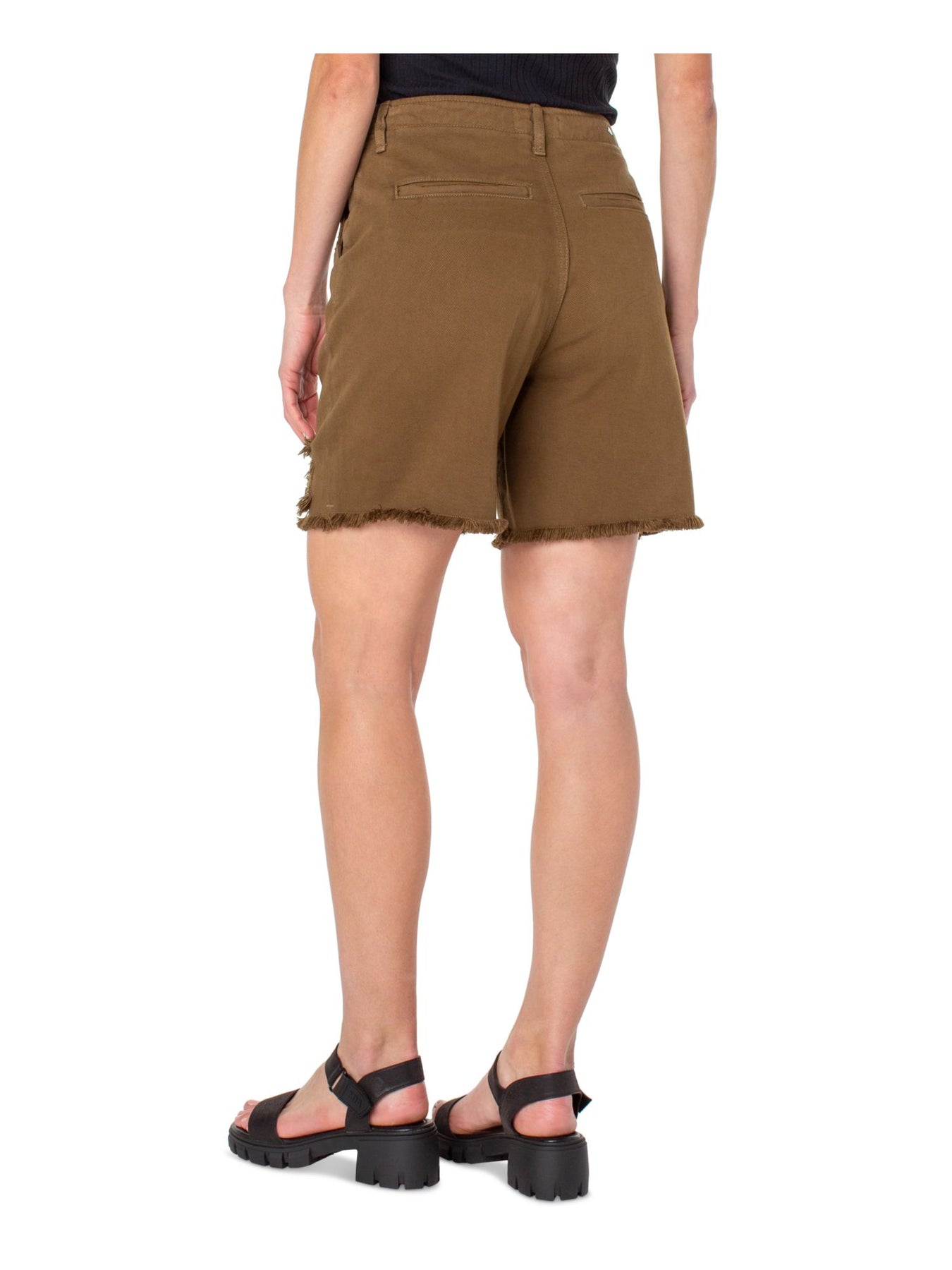 EARNEST SEWN NEW YORK Womens Denim Zippered Frayed Hems Button Closure High Waist Shorts