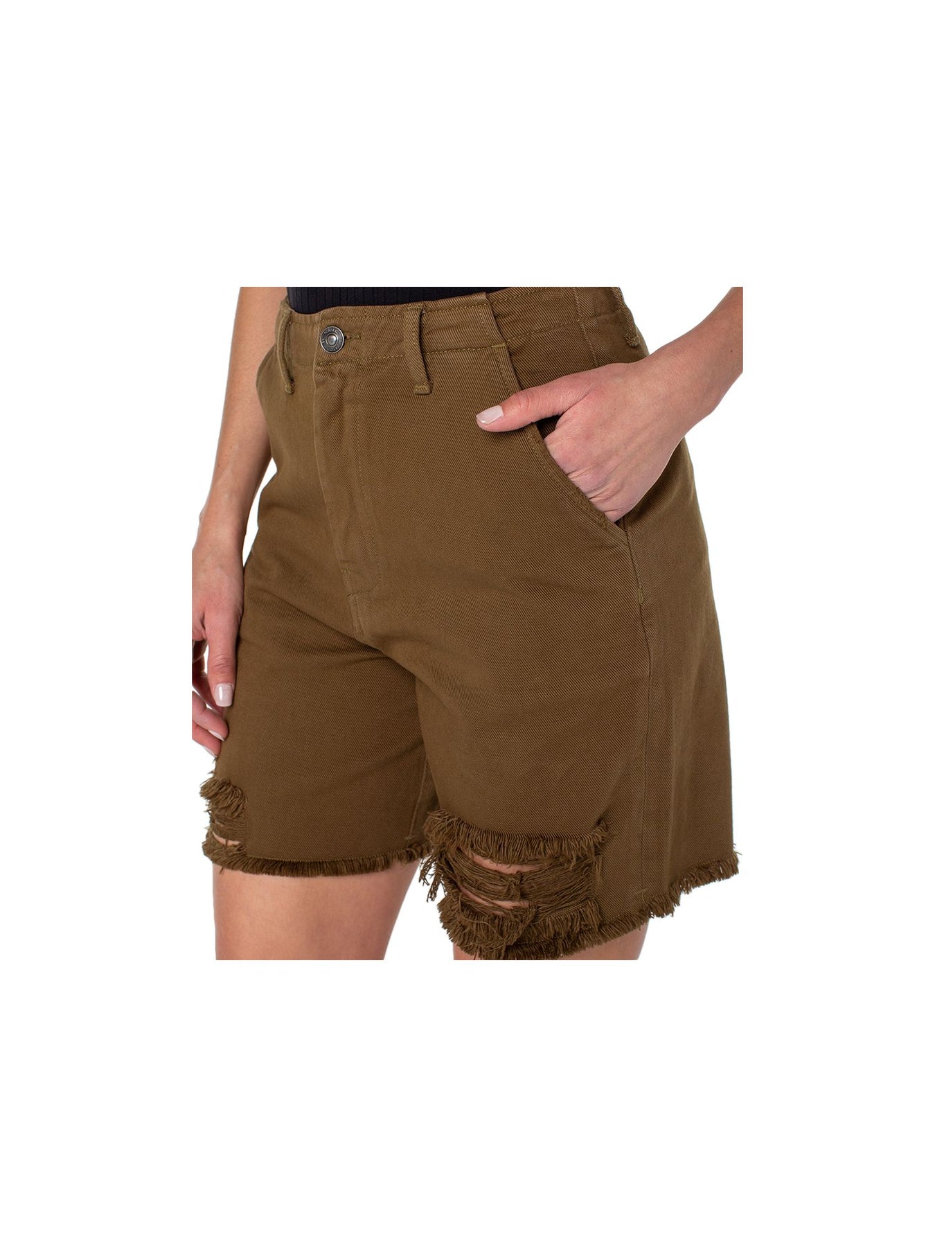• Details: Frayed Hems Button Closure