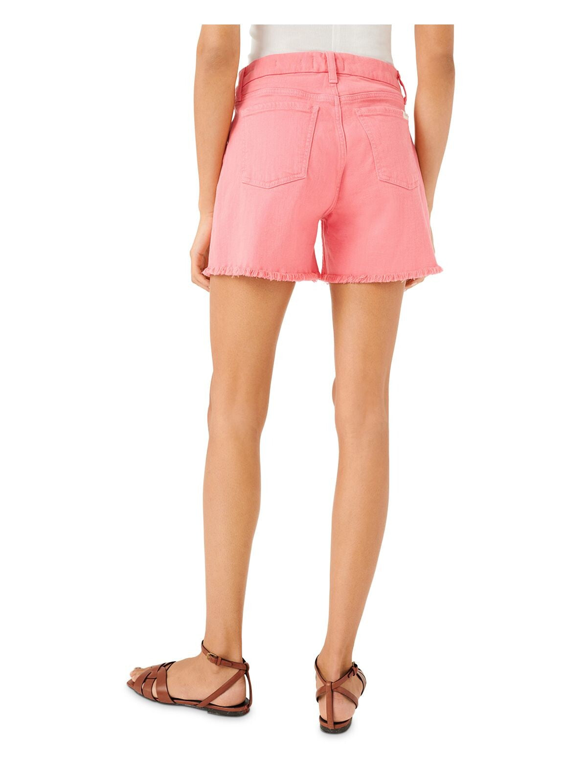 Womens Pink Stretch Zippered Pocketed Frayed Hem Tummy Control Shorts