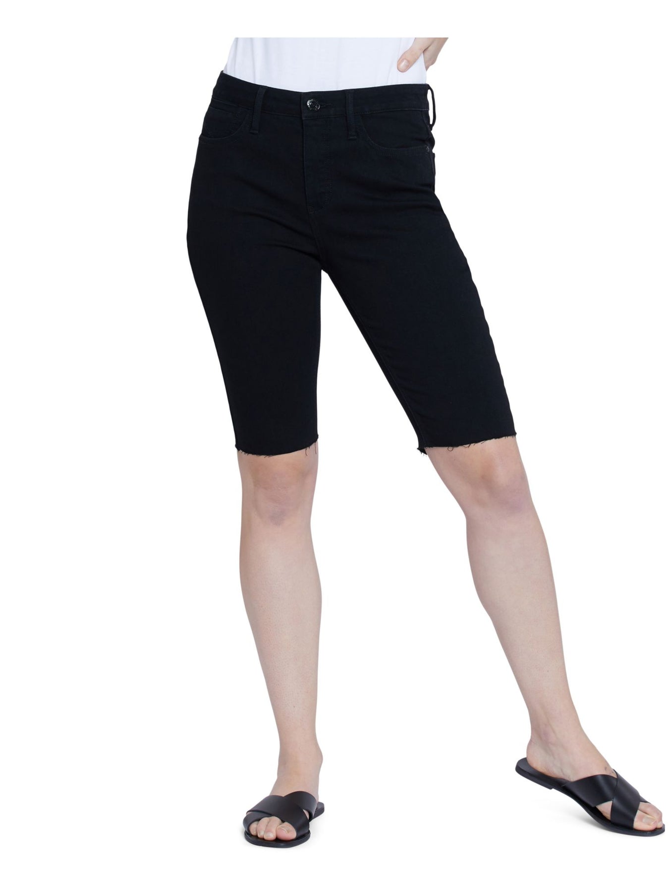 SEVEN7 Womens Bermuda Shorts Black Stretch Zippered Pocketed Solid Frayed 2