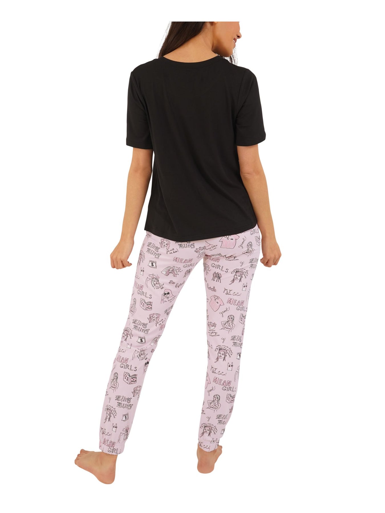Pink Printed Short Sleeve Cuffed Sleepwear Pajamas