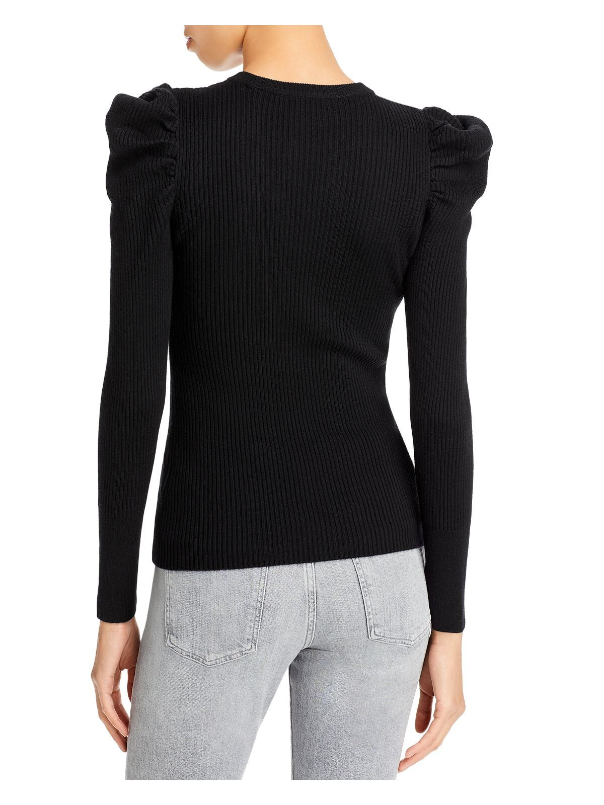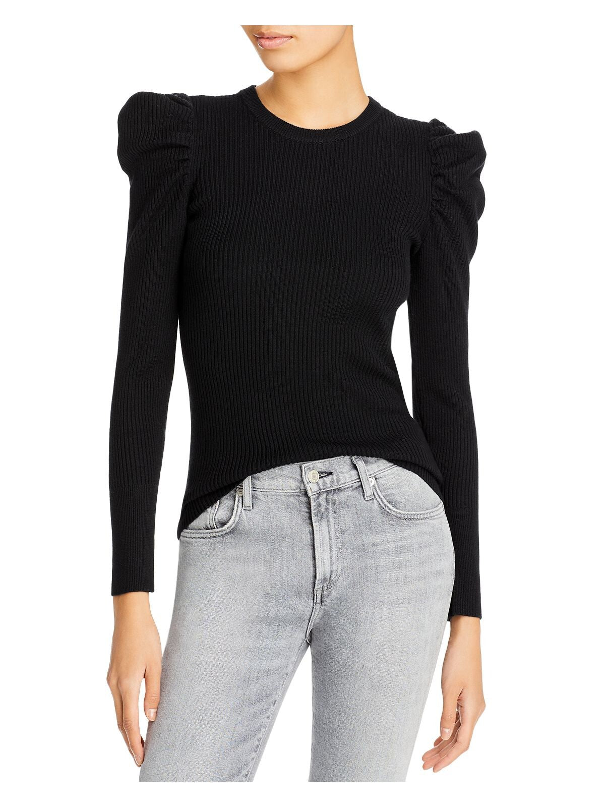 Womens Ribbed Pouf Sleeve Crew Neck Sweater