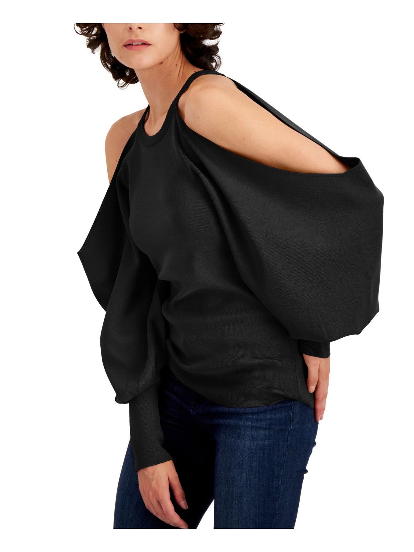 INC Womens Black Stretch Cold Shoulder Ribbed Blouson Sleeve Halter Sweater XS