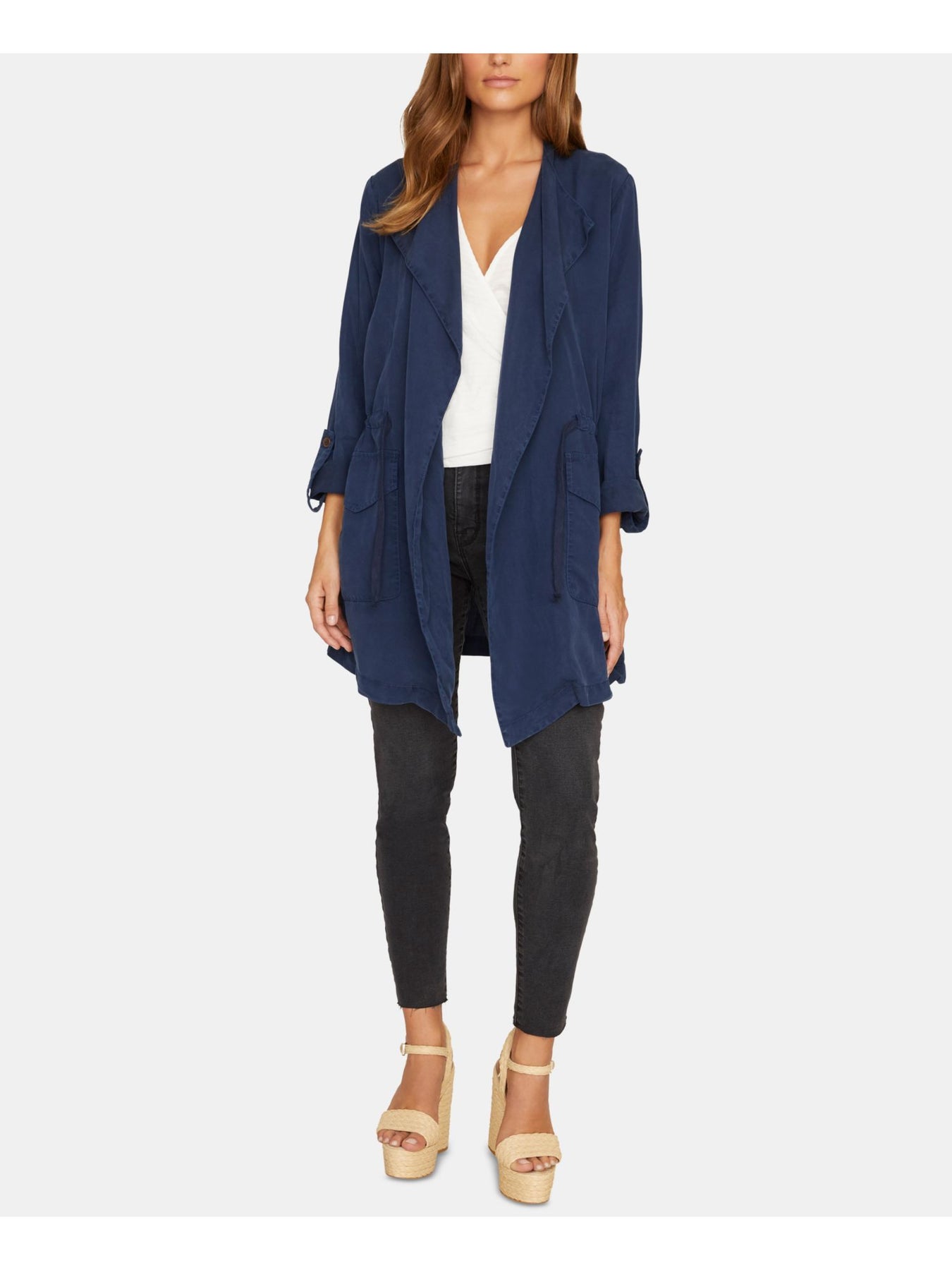 SANCTUARY Womens Navy Long Sleeve V Neck Sweater