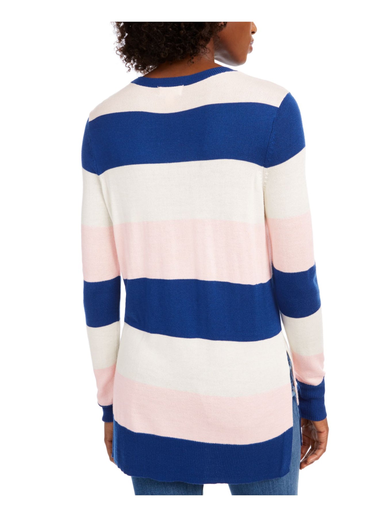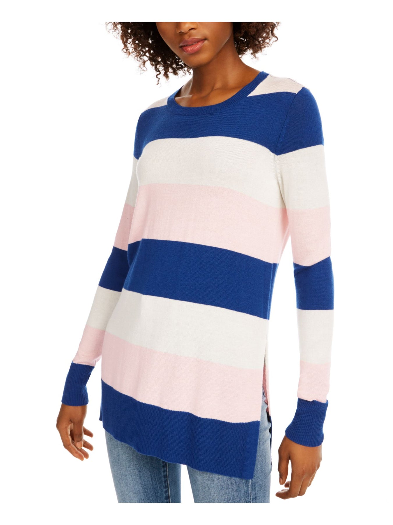 Womens Navy Color Block Long Sleeve Jewel Neck T-Shirt
