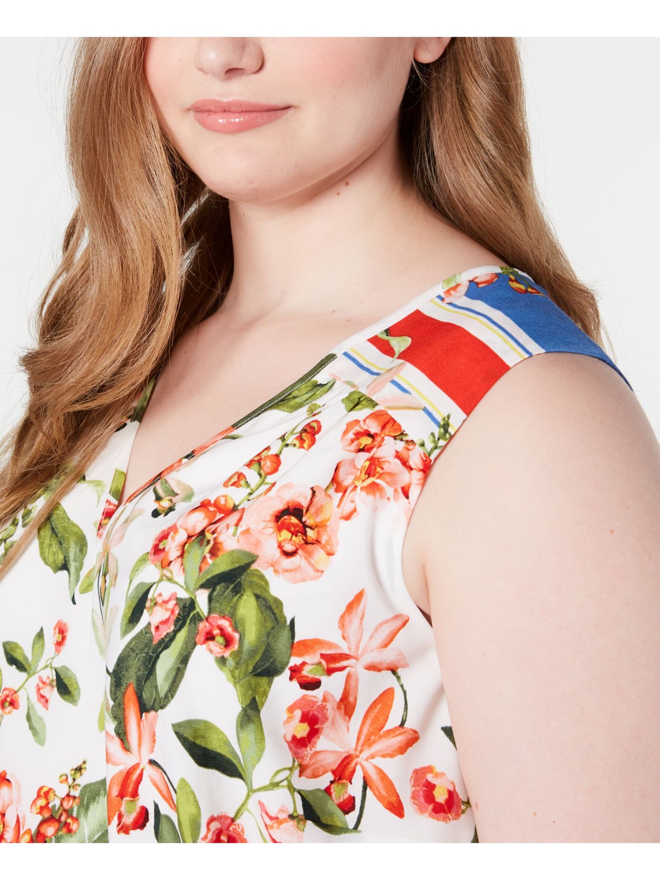 TOMMY HILFIGER Womens Floral Sleeveless V Neck Midi Fit + Flare Dress