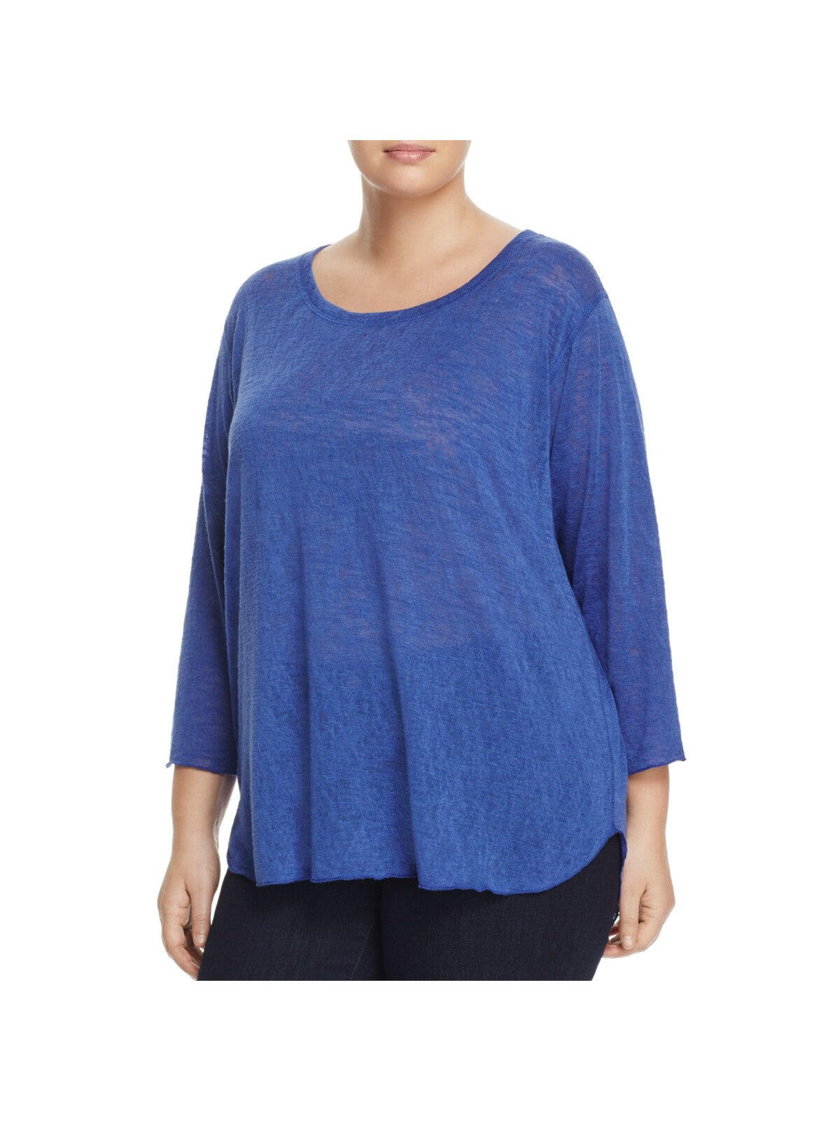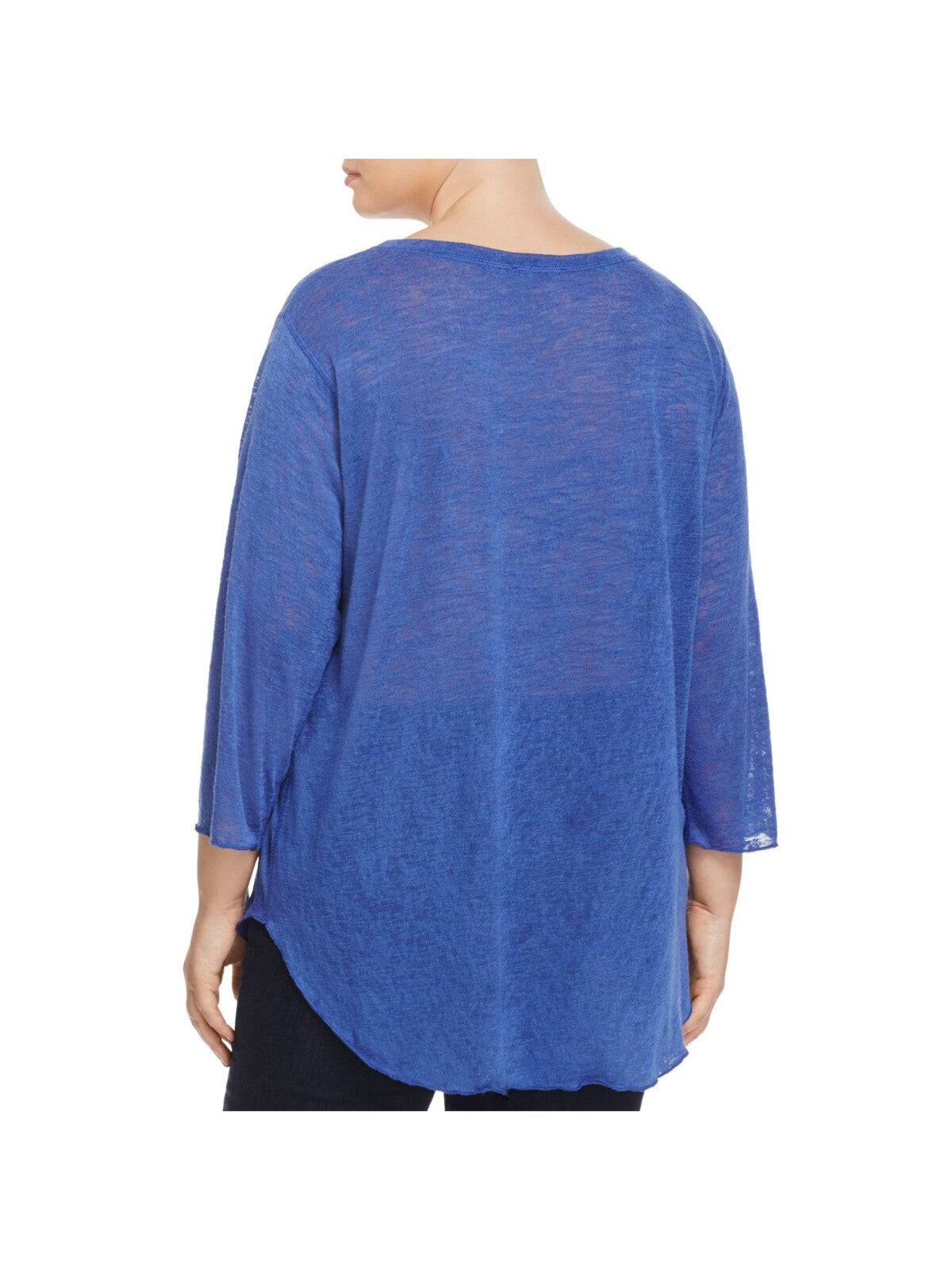 NALLY & MILLIE Womens Blue 3/4 Sleeve Round Neck Top 2X