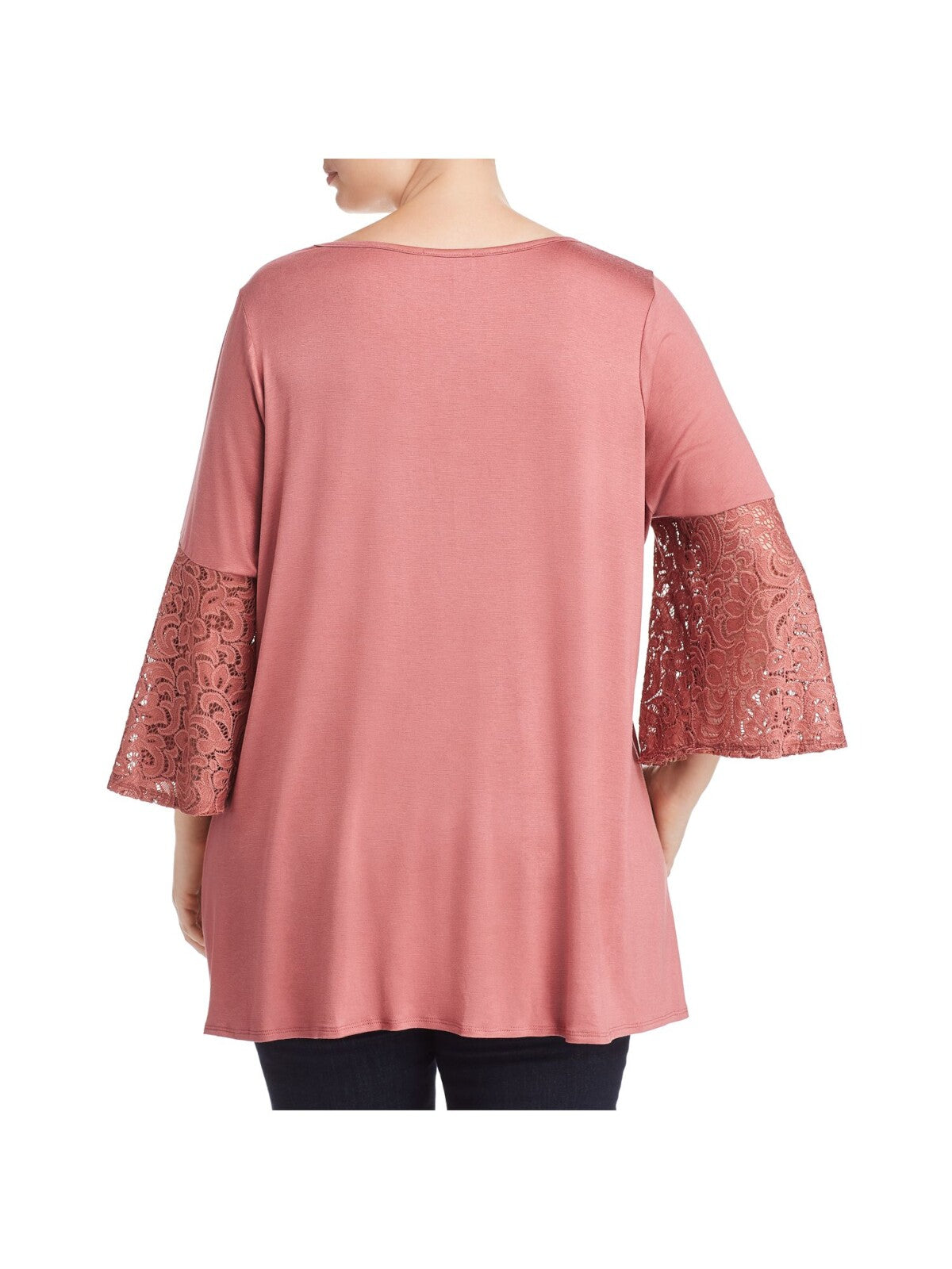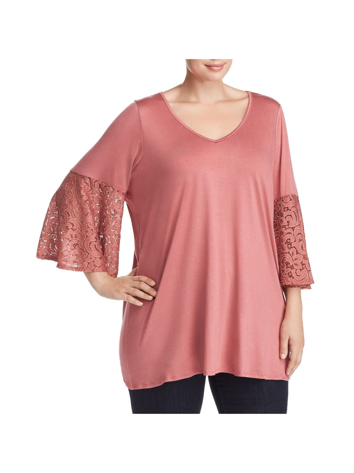 STATUS BY CHENAULT Womens Top Pink Stretch Lace Bell Sleeve V Neck Solid Plus 2X