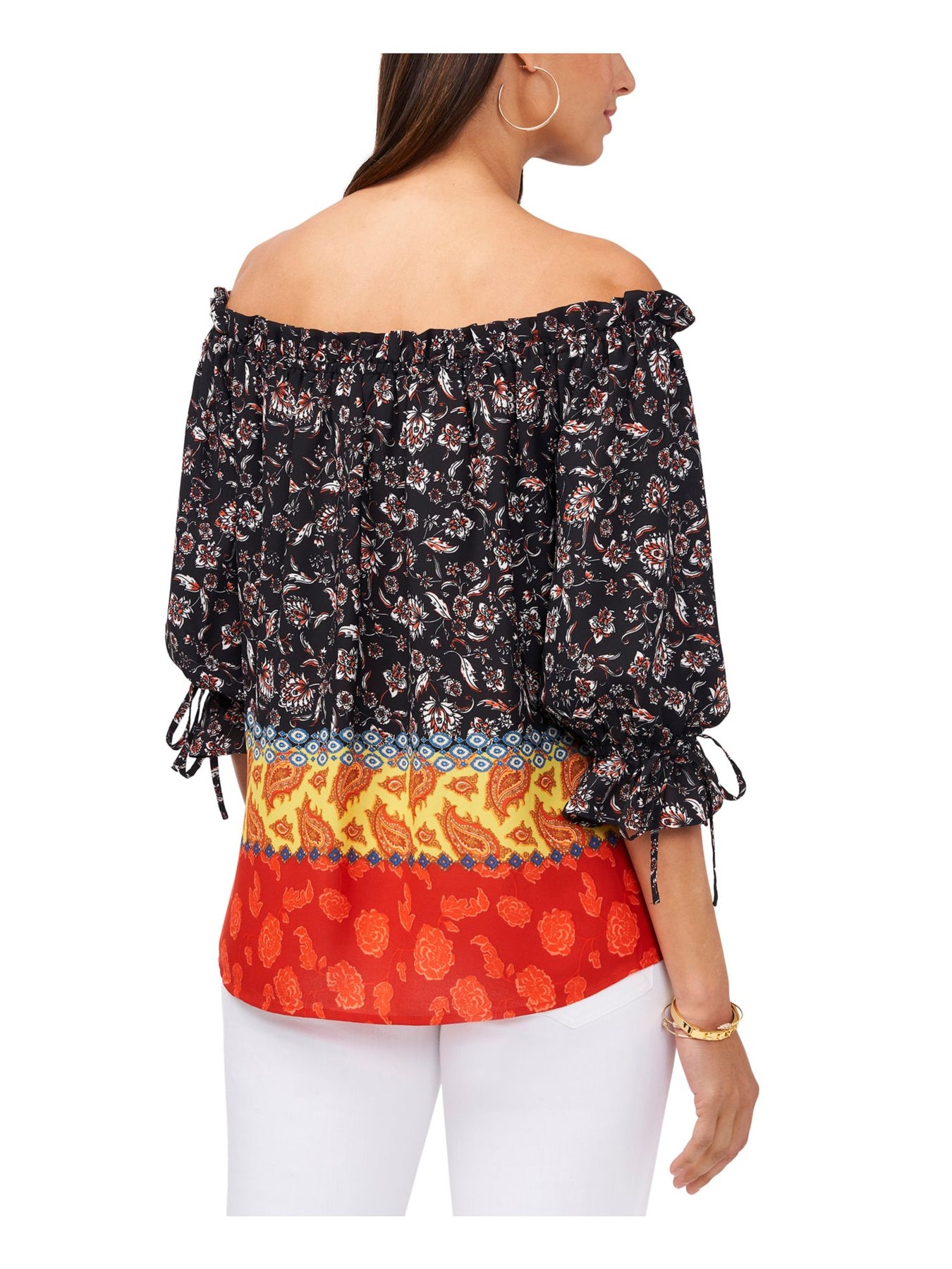 VINCE CAMUTO Womens Top Pleated 3/4 Sleeve Off Shoulder Tie Cuffs