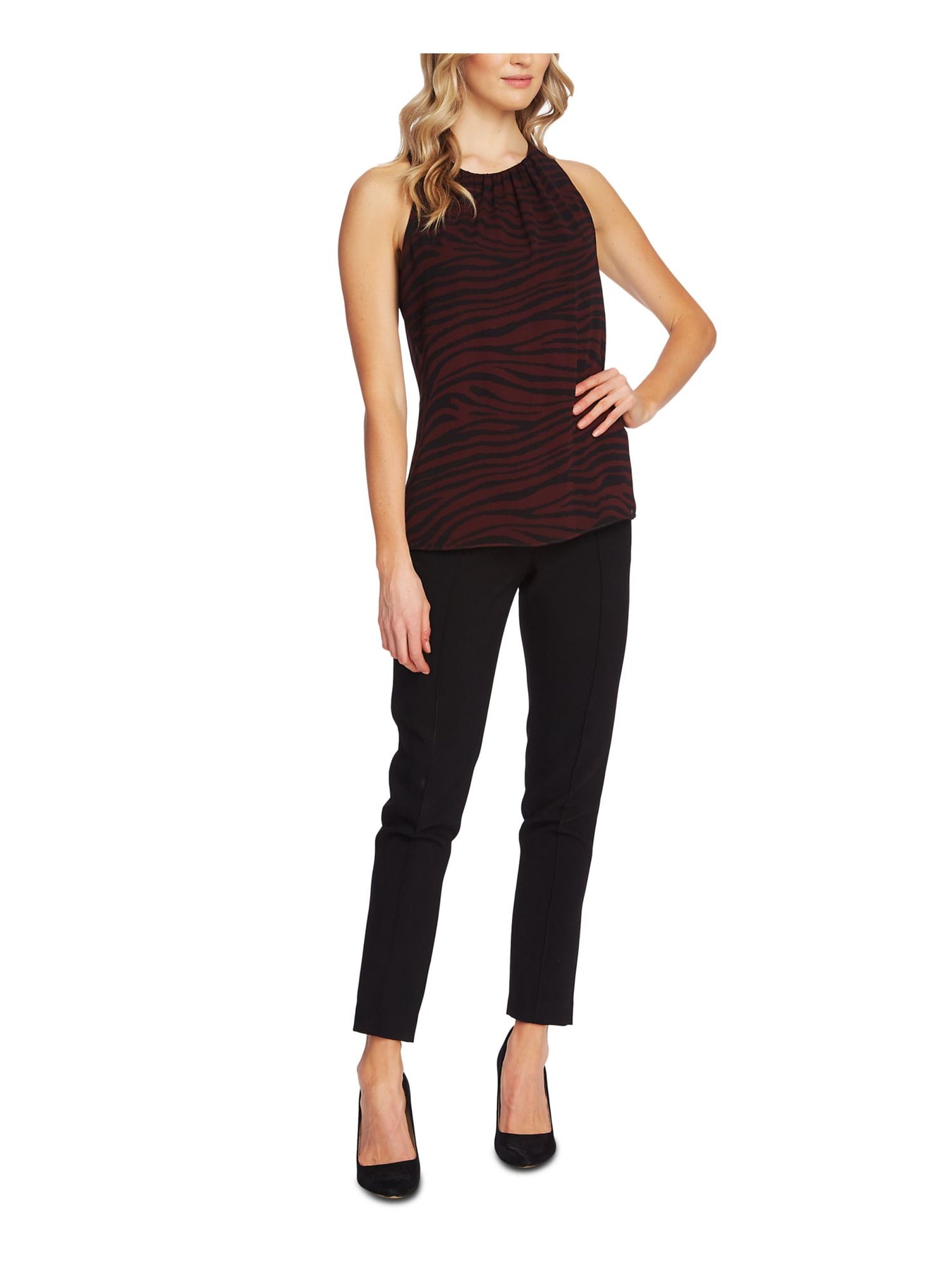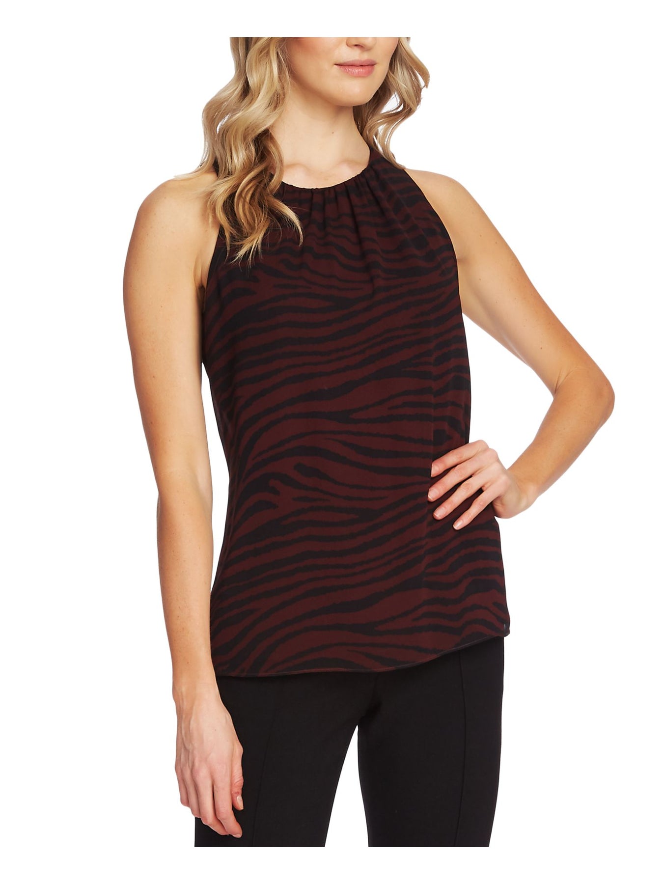 VINCE CAMUTO Womens Top Tank Maroon Sleeveless Keyhole Striped XXS