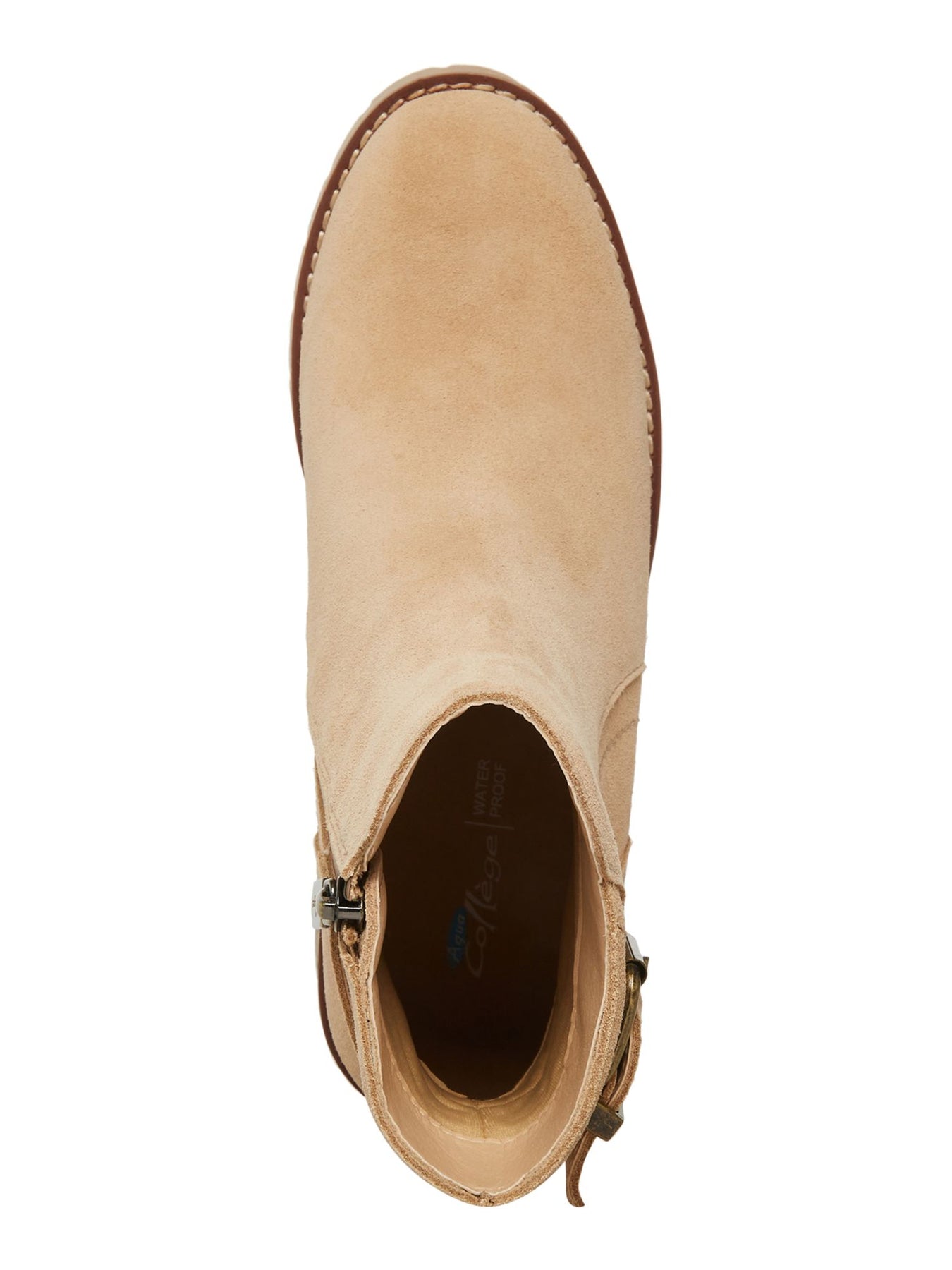 Womens Beige Padded Waterproof Buckle Accent Lug Sole Desiree Almond Toe Block Heel Zip-Up Booties M