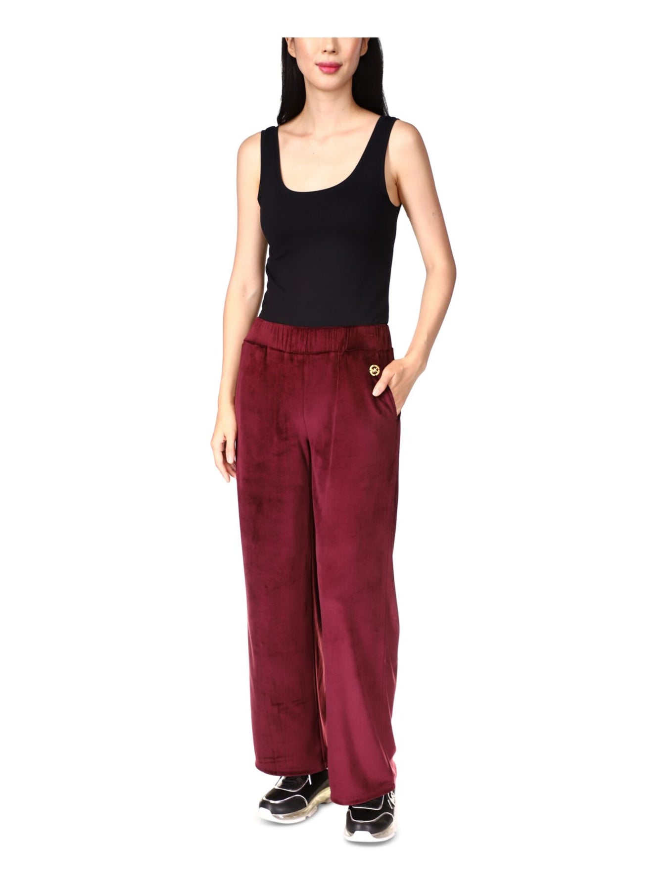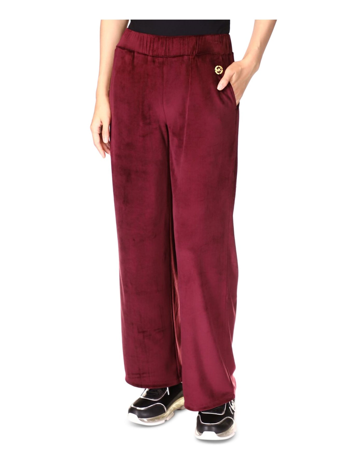 MICHAEL MICHAEL KORS Womens Burgundy Pocketed Pull-on Metallic Logo Velour Straight leg Pants