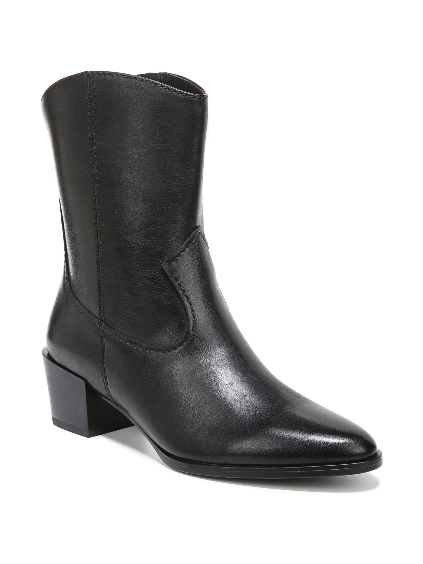Womens Black Padded Gaby Almond Toe Block Heel Zip-Up Leather Western Boot M