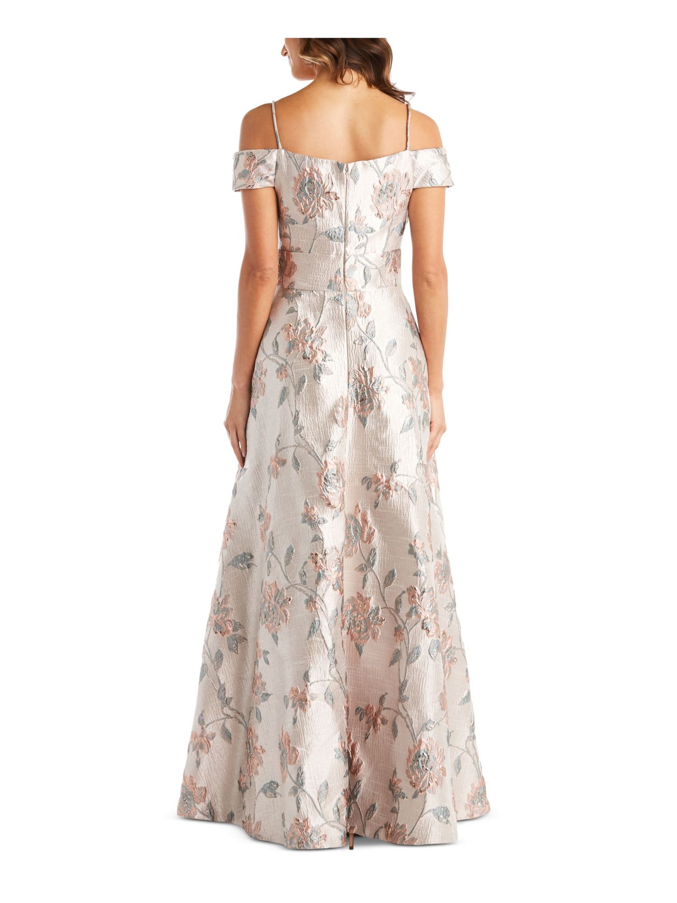 NIGHTWAY Womens Beige Cold Shoulder Slitted Floral Spaghetti Strap Off Shoulder Full-Length Formal Fit + Flare Dress 4