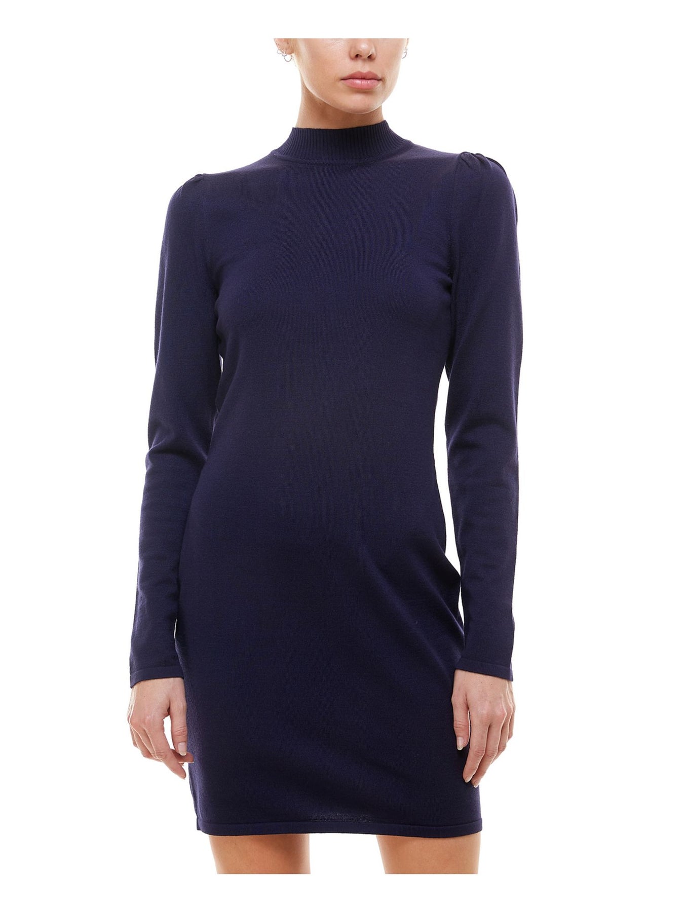 PLANET GOLD Womens Navy Long Sleeve Turtle Neck Short Sheath Dress S