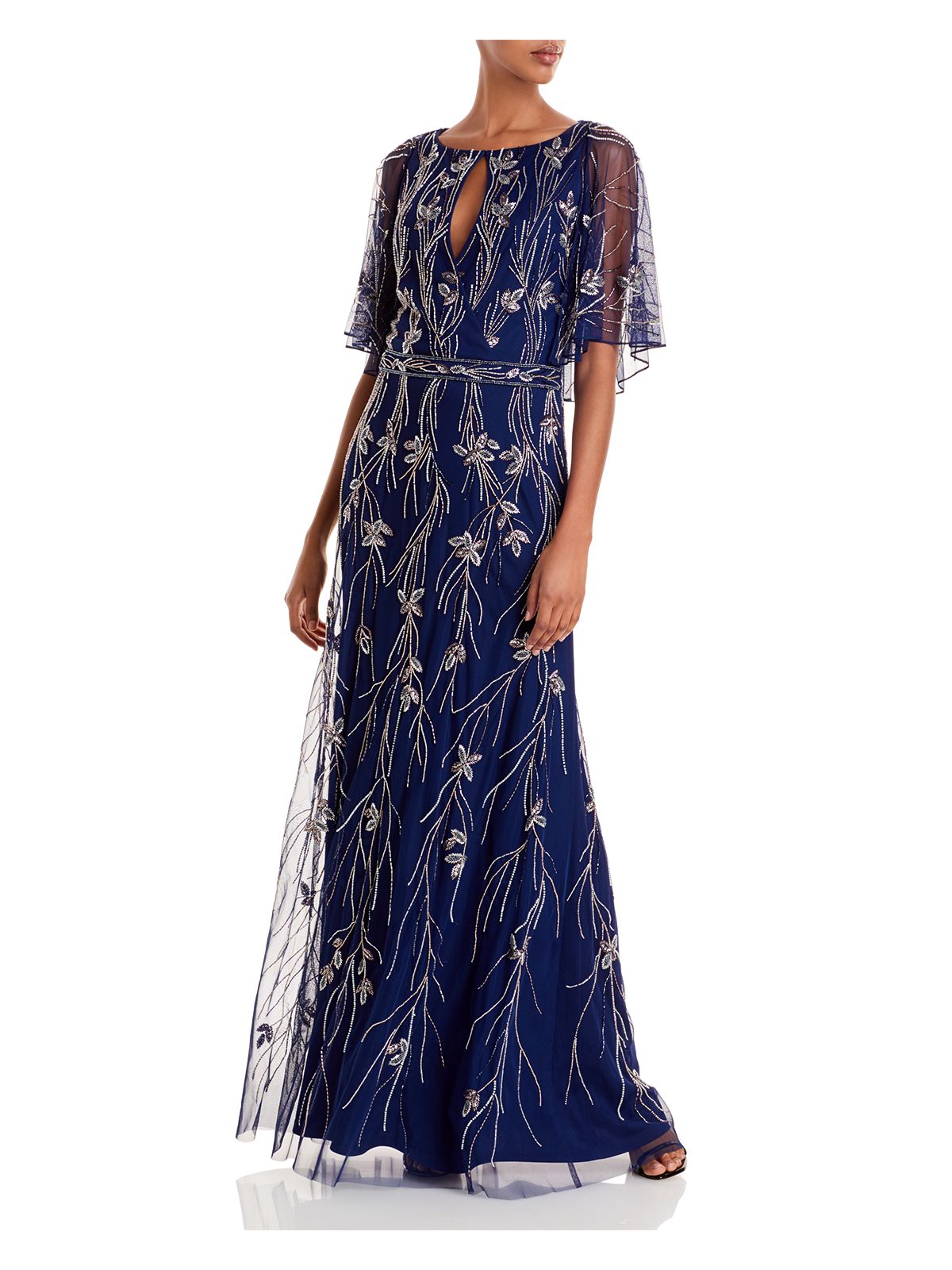 Womens Embellished Sleeveless Keyhole Full-Length Formal Sheath Dress