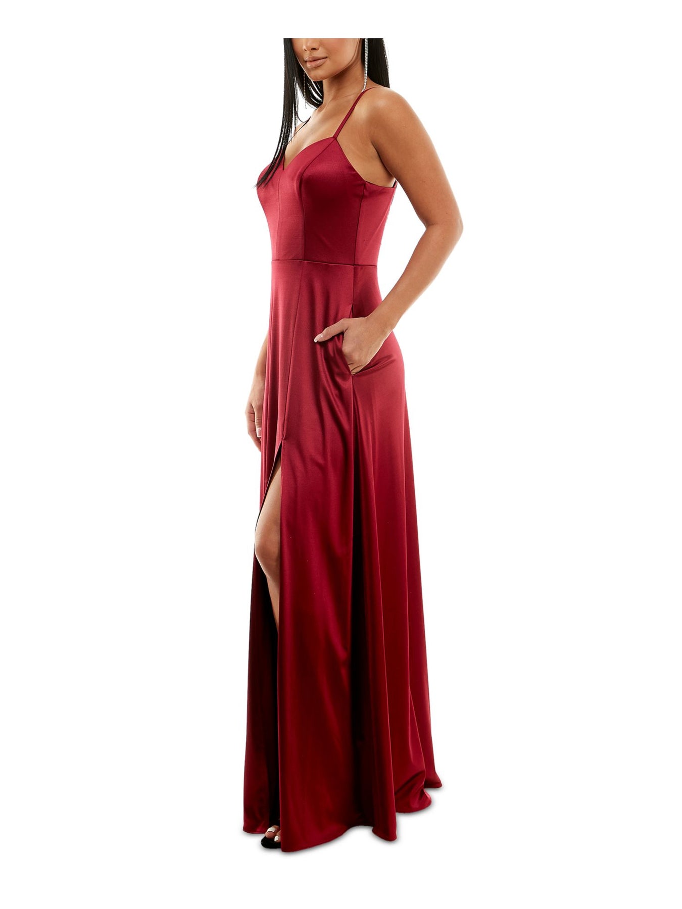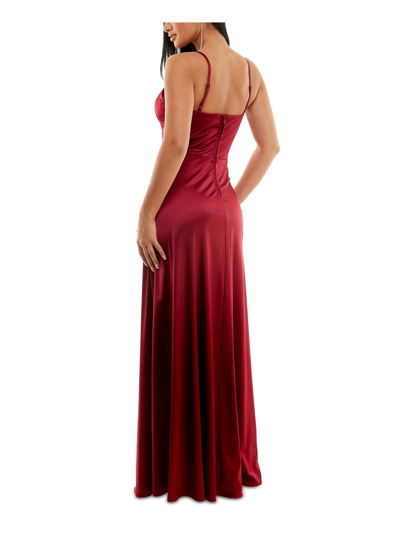 CITY STUDIO Womens Burgundy Slitted Spaghetti Strap Full-Length Formal Fit + Flare Dress