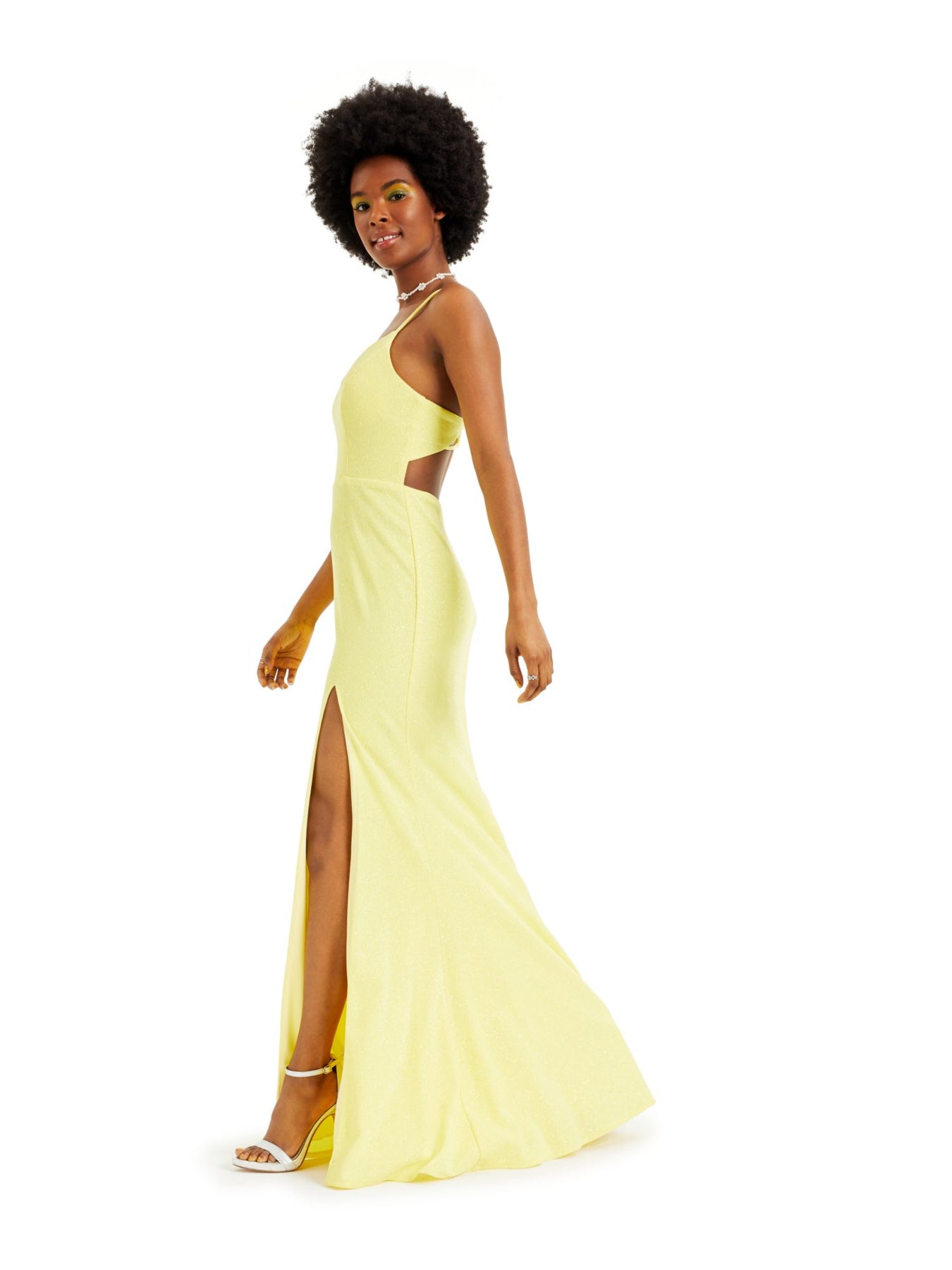 CITY STUDIO Womens Body Con Full-Length Dress Yellow Glitter Slitted Spaghetti Strap Sweetheart Neckline Formal 5