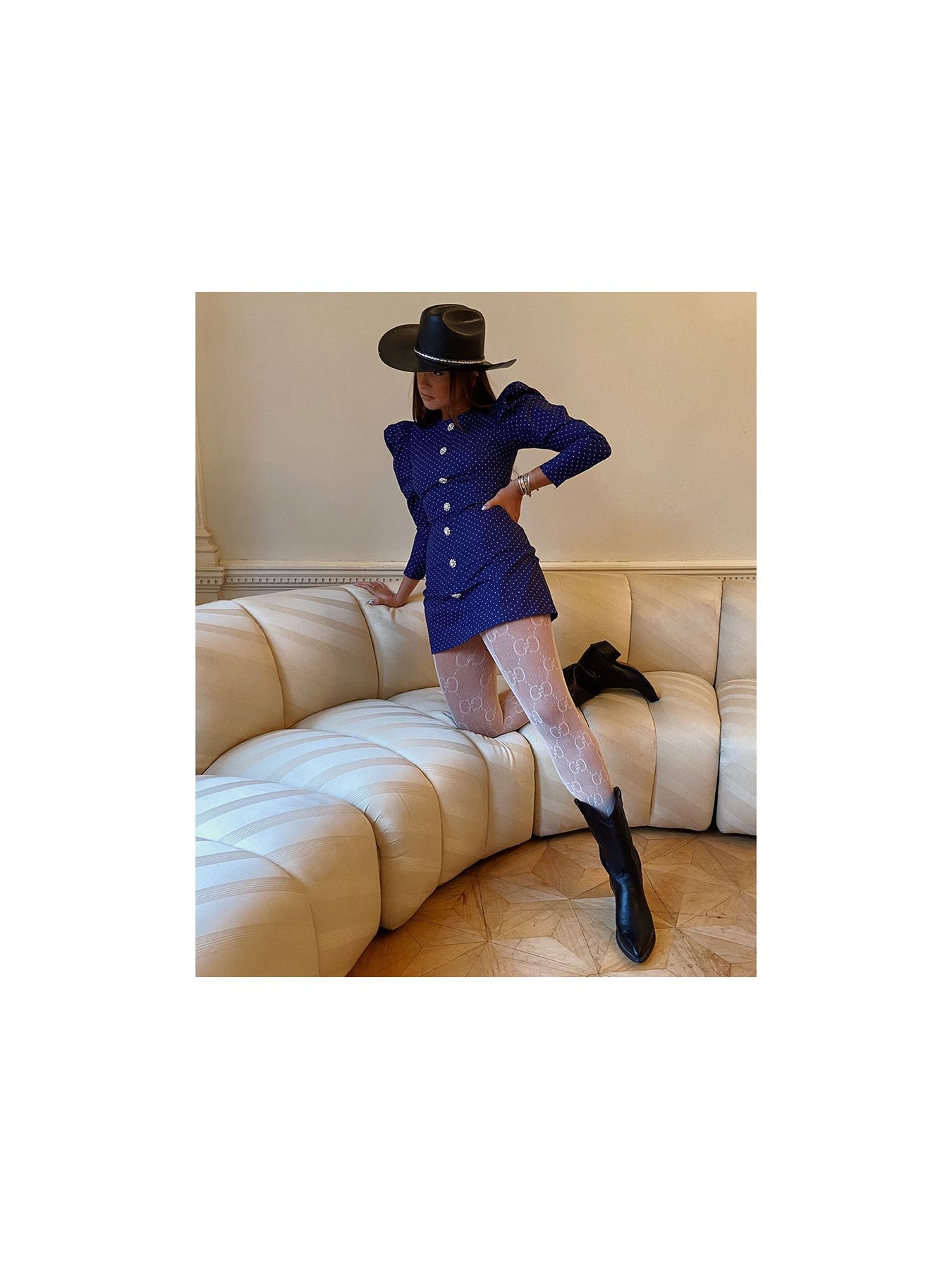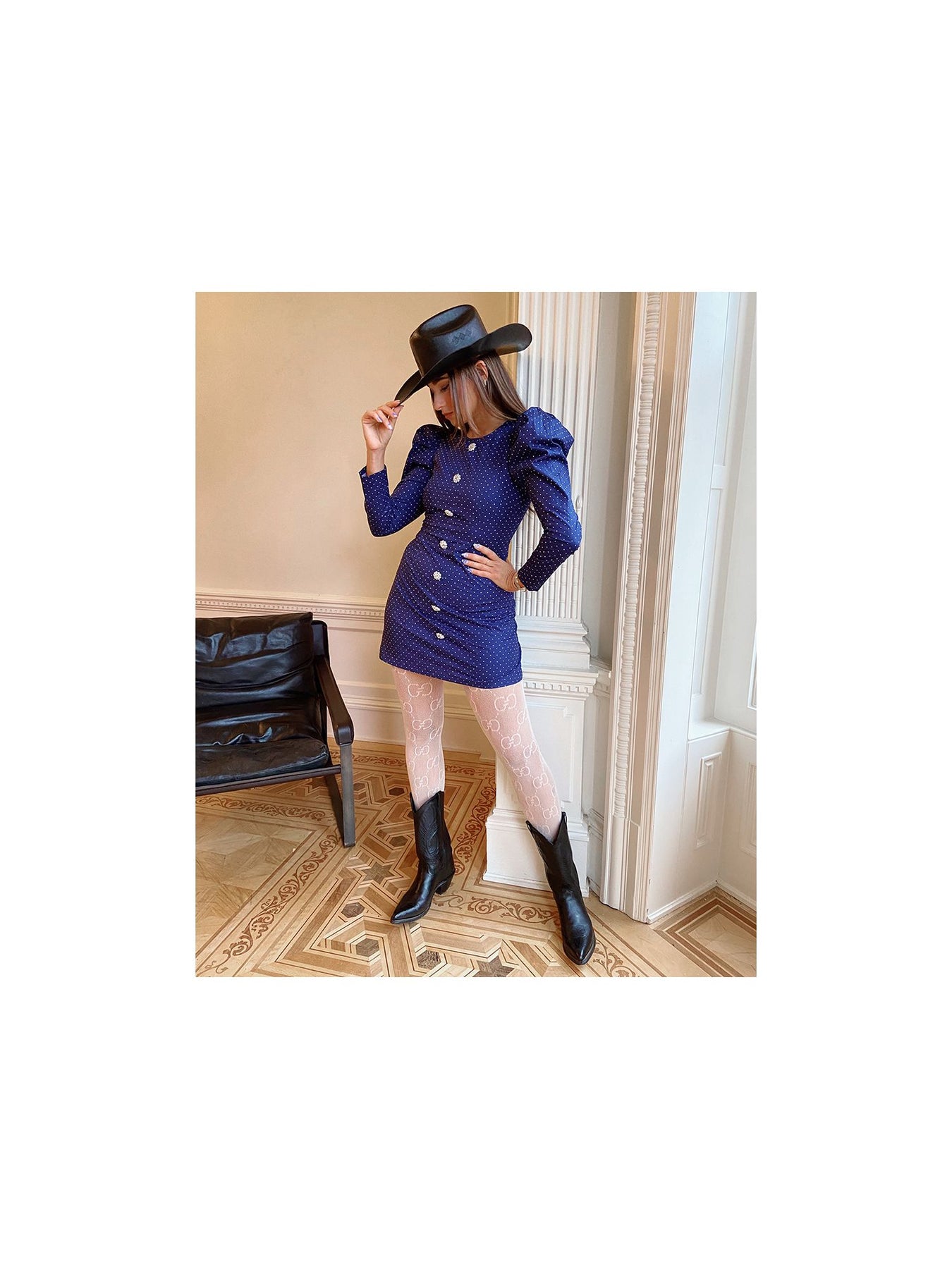 DANIELLE BERNSTEIN Womens Blue Embellished Zippered Polka Dot Pouf Crew Neck Short Party Sheath Dress XS