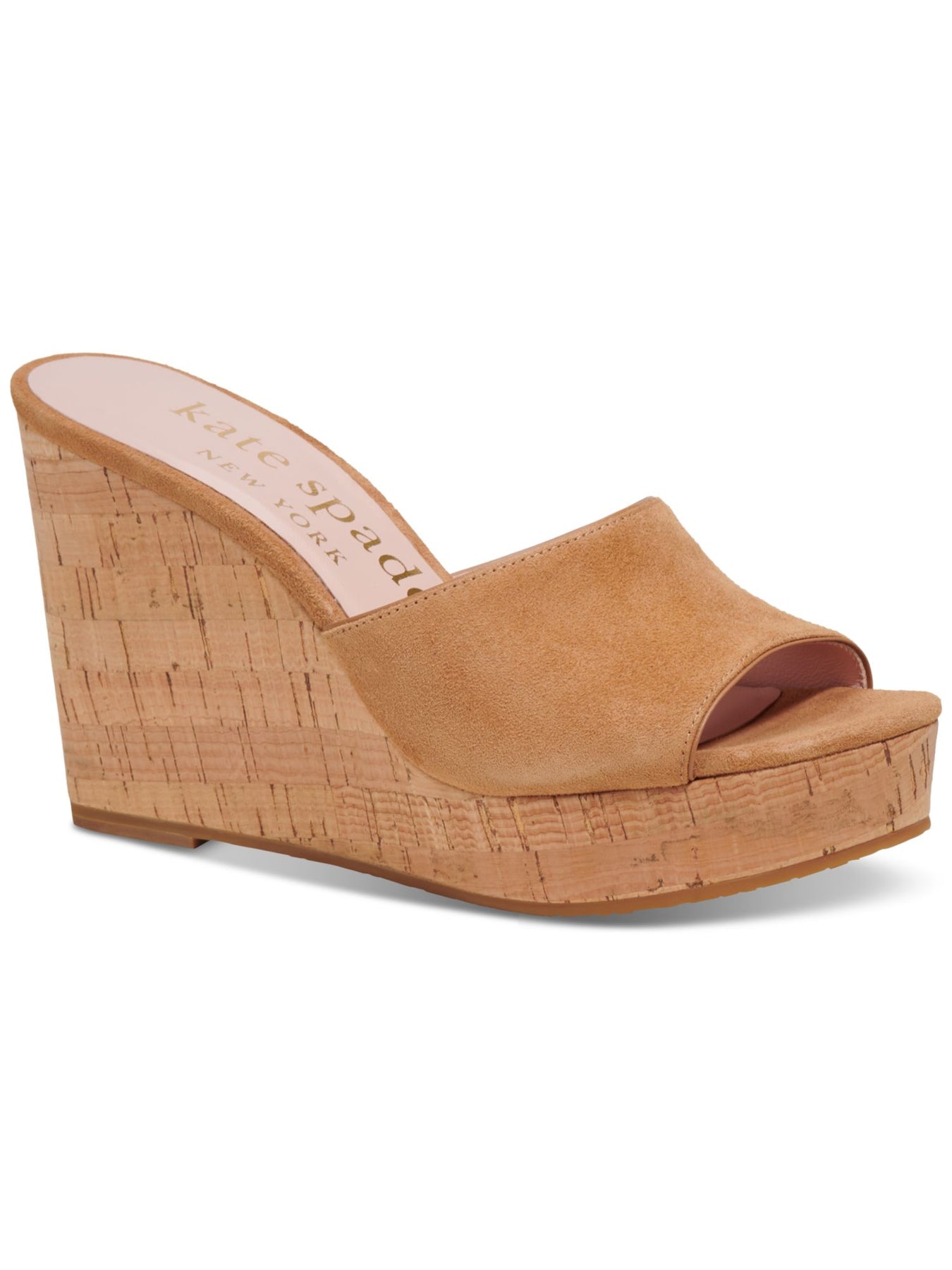 Womens Beige 1" Cork-Like Platform Padded Penelope Round Toe Wedge Slip On Leather Heeled B