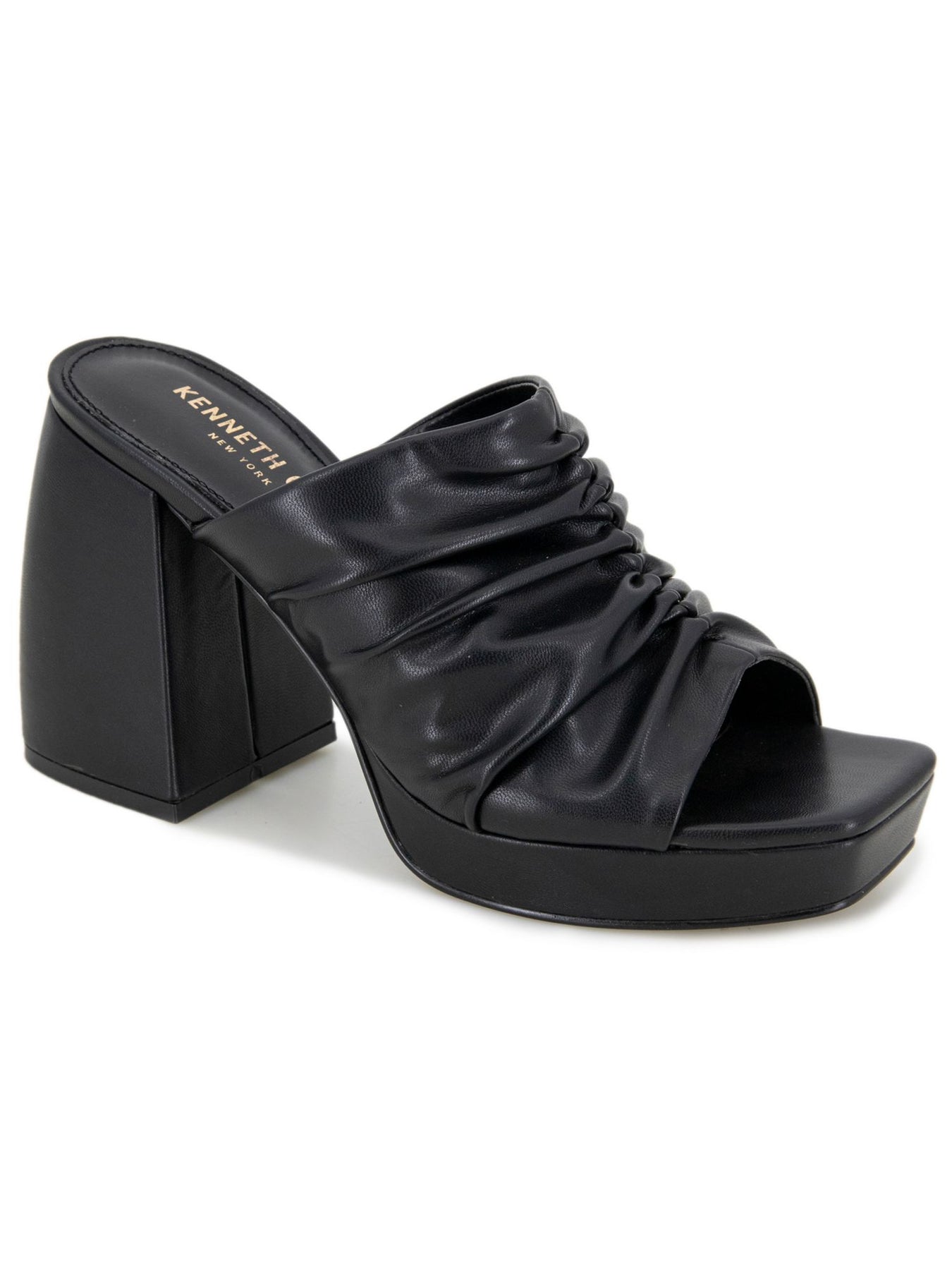 KENNETH COLE NEW YORK Womens Black Ruched Padded Anika Open Toe Sculpted Heel Slip On Heeled Sandal 10