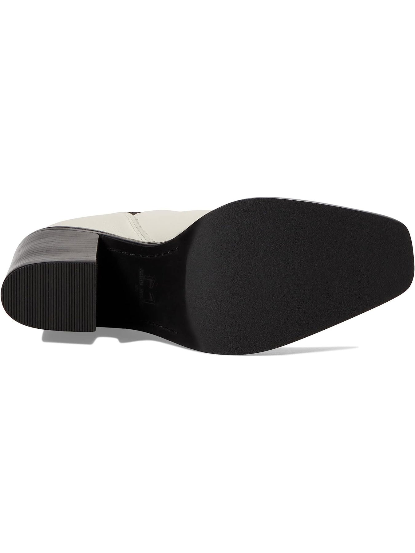 Womens Ivory Pull Tab Goring Padded Kristie Square Toe Block Heel Leather Heeled Boots M