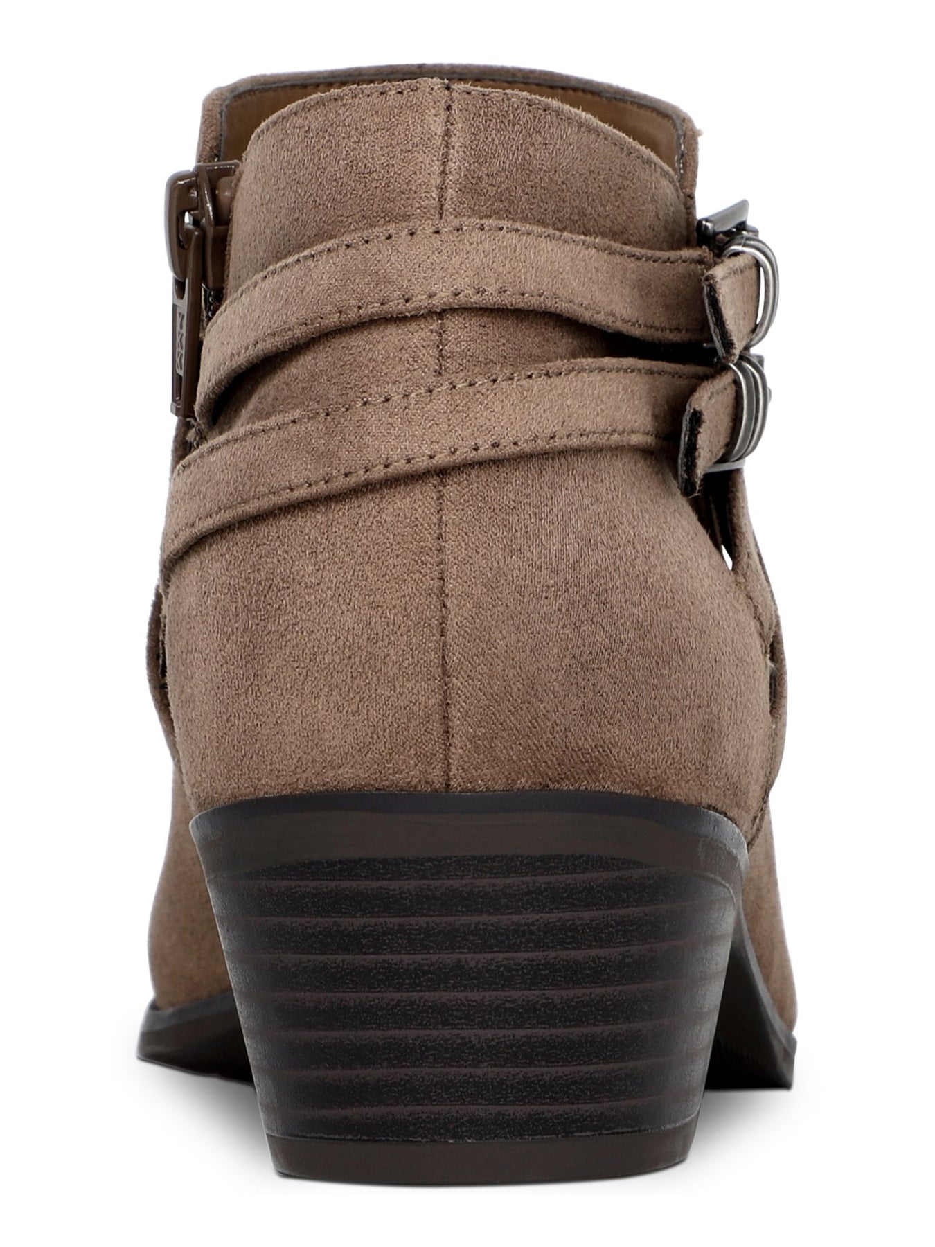 Womens Beige Cushioned Buckle Accent Willoww Round Toe Block Heel Zip-Up Booties M