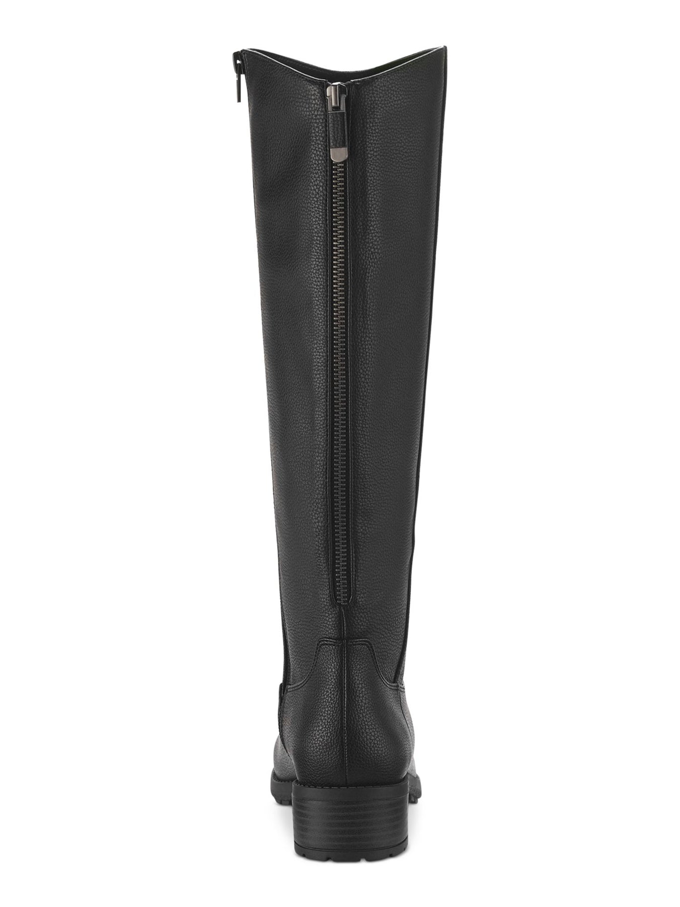 Womens Black Cushioned Zipper Accent Stretch Graciee Round Toe Block Heel Zip-Up Riding Boot M
