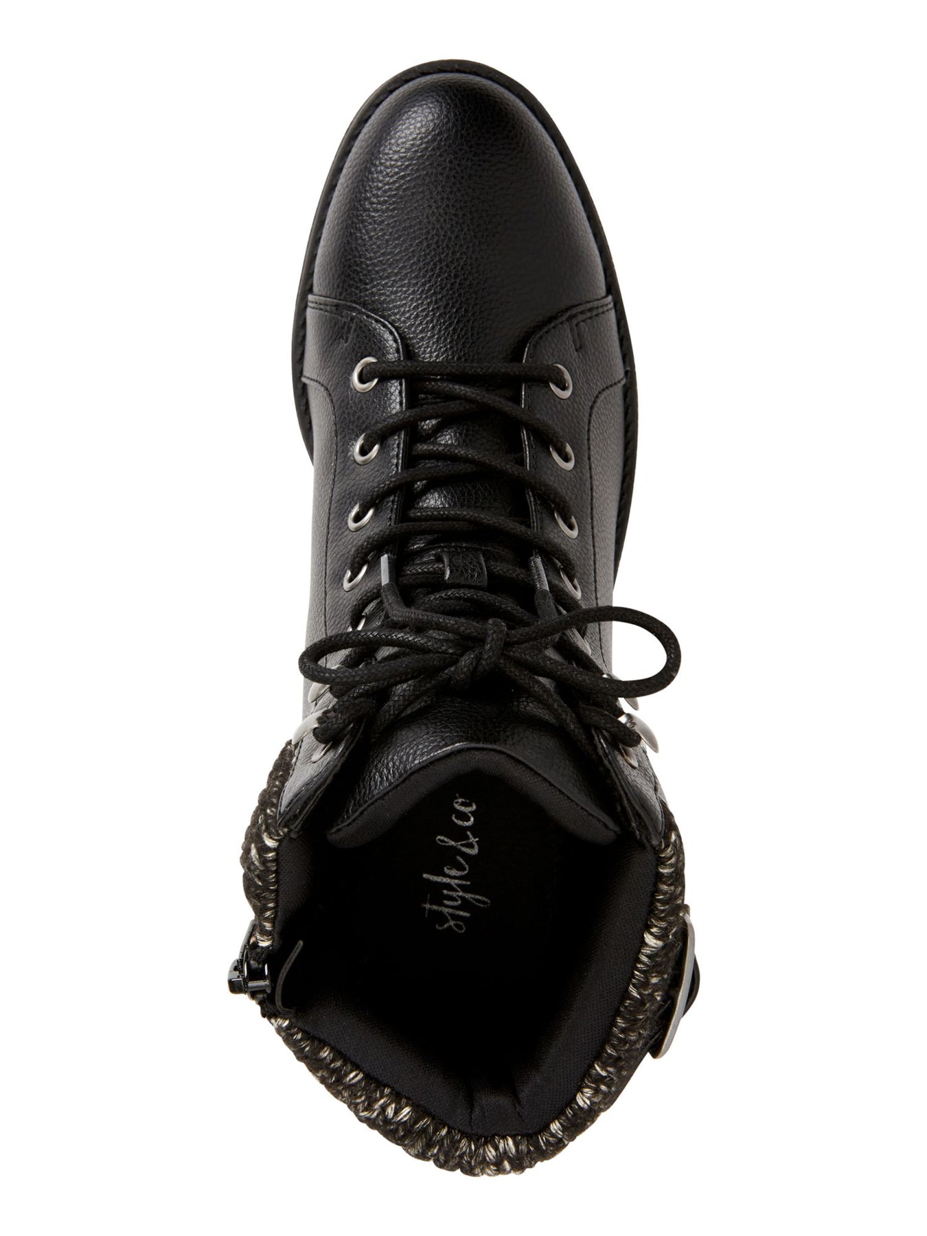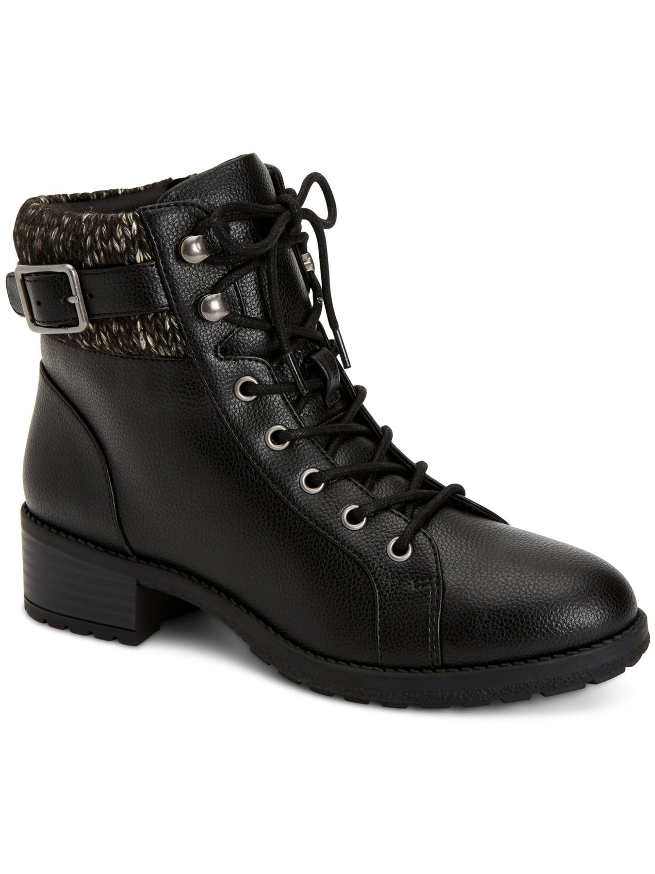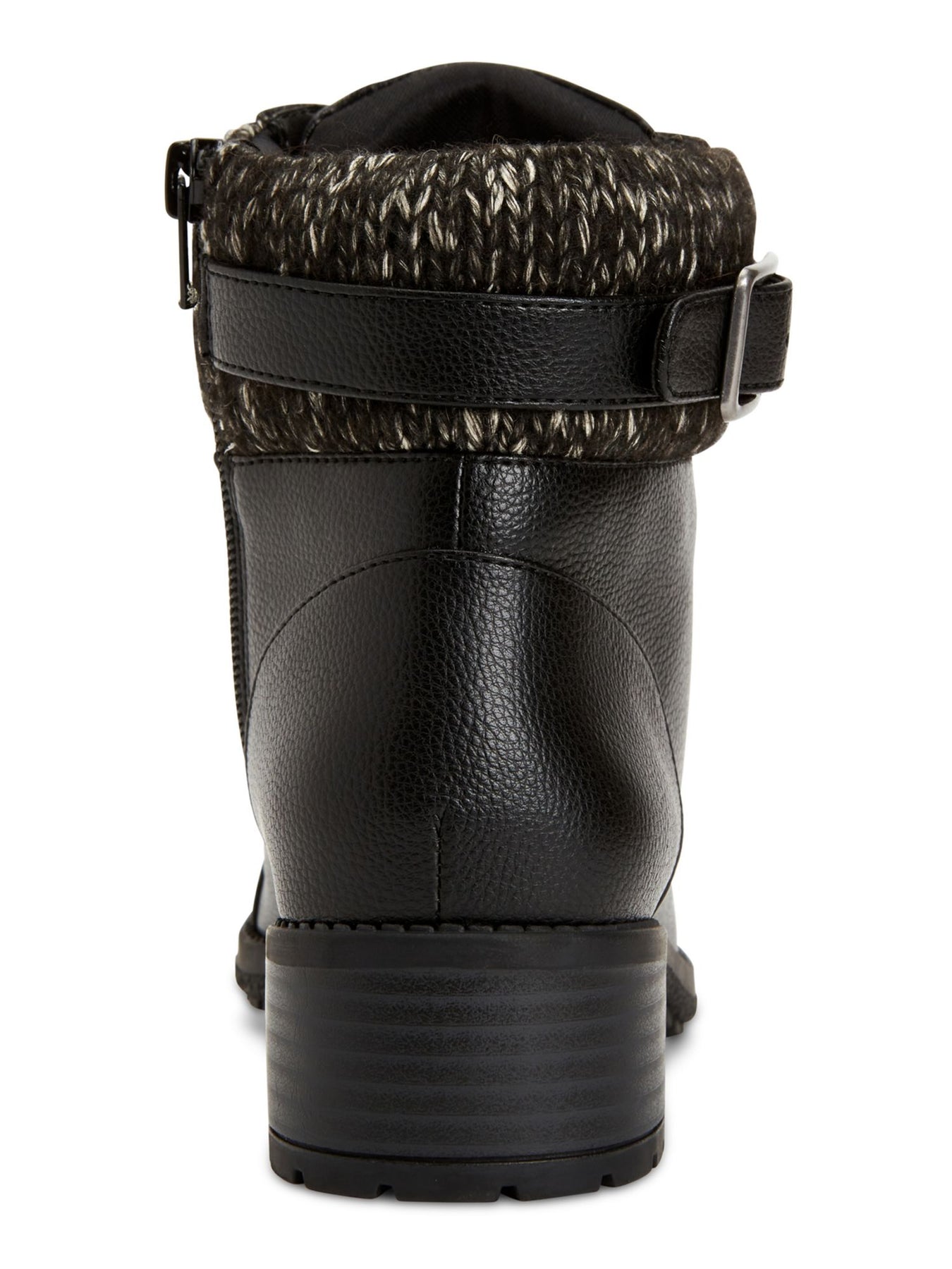 Womens Black Lace Comfort Buckle Accent Slip Resistant Gaiel Round Toe Block Heel Zip-Up Hiking Boots M