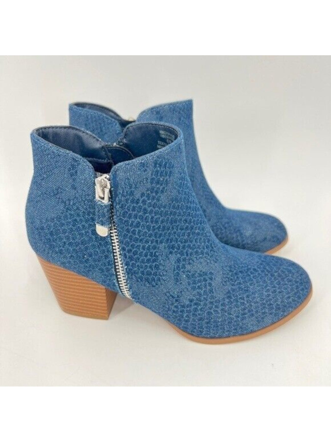 Womens Blue Tonal Pattern Zipper Accent Padded Masrinaa Almond Toe Block Heel Zip-Up Booties M