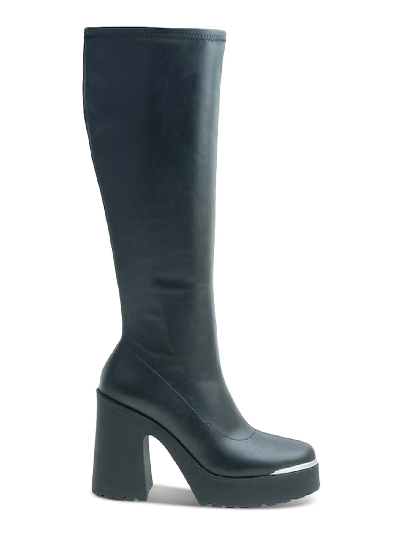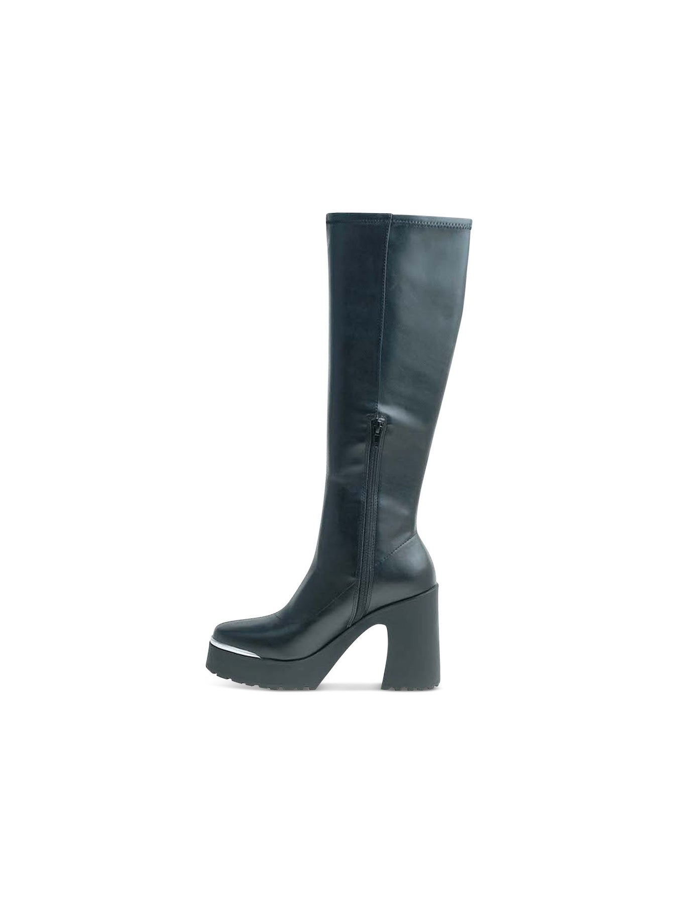 Womens Black Zipper Accent Killian Round Toe Block Heel Riding Boot M
