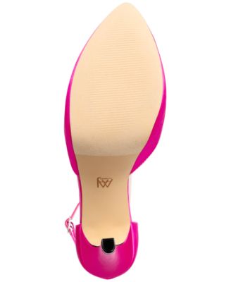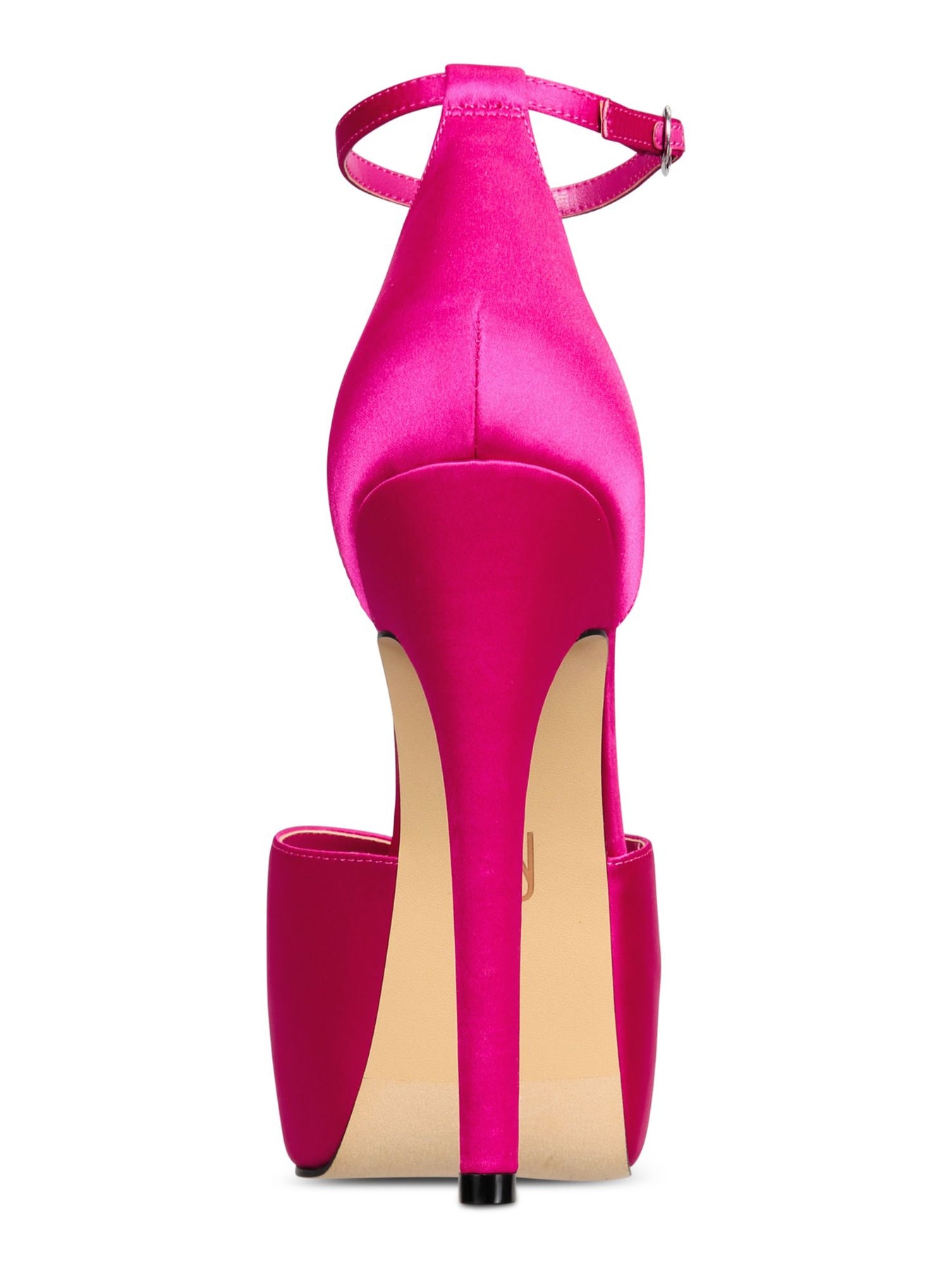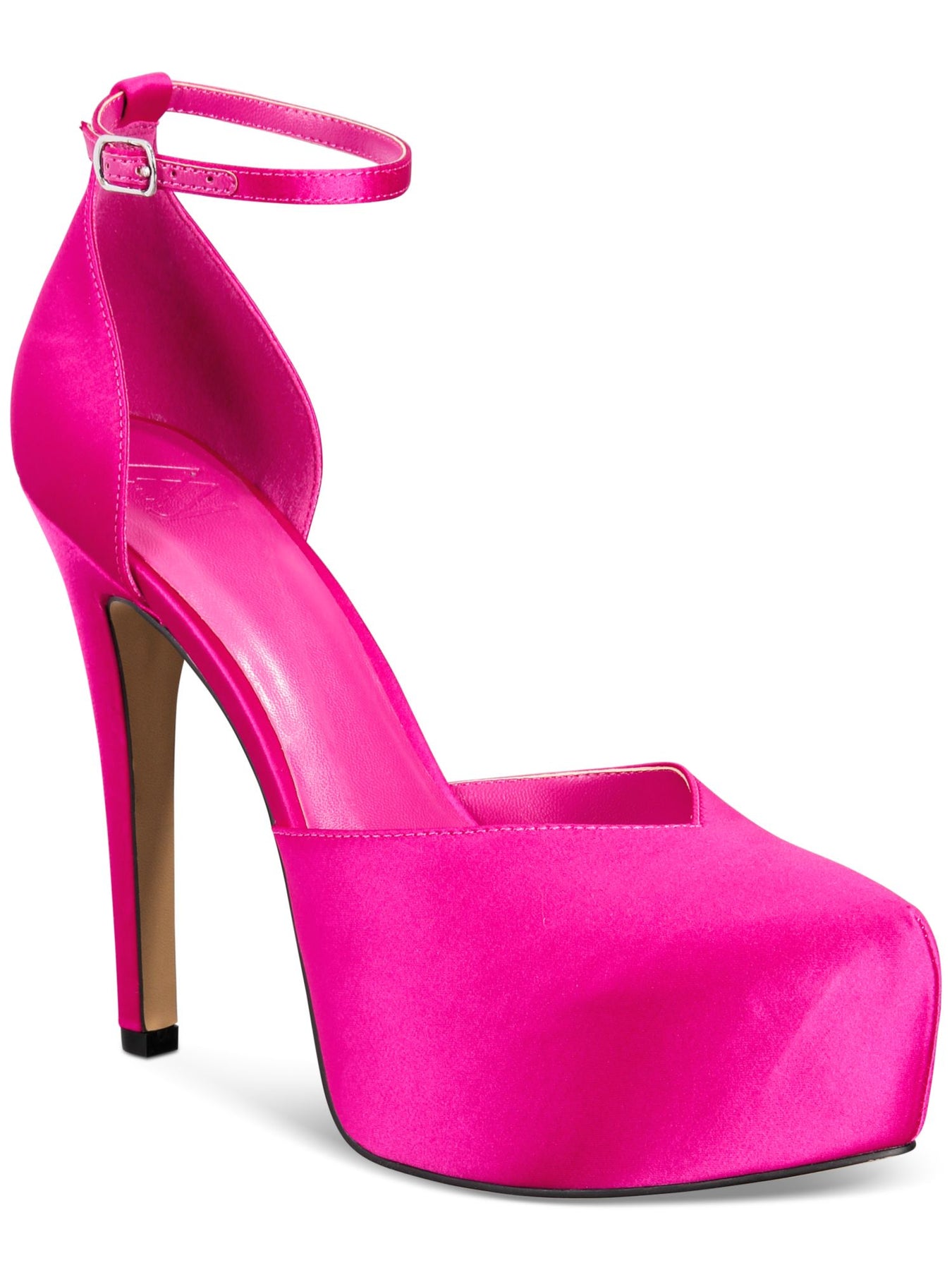 AAJ BY AMINAH Womens Pink 1-1/2" Platform Ankle Strap Padded Satiya Pointy Toe Stiletto Buckle Pumps Shoes 9.5 M